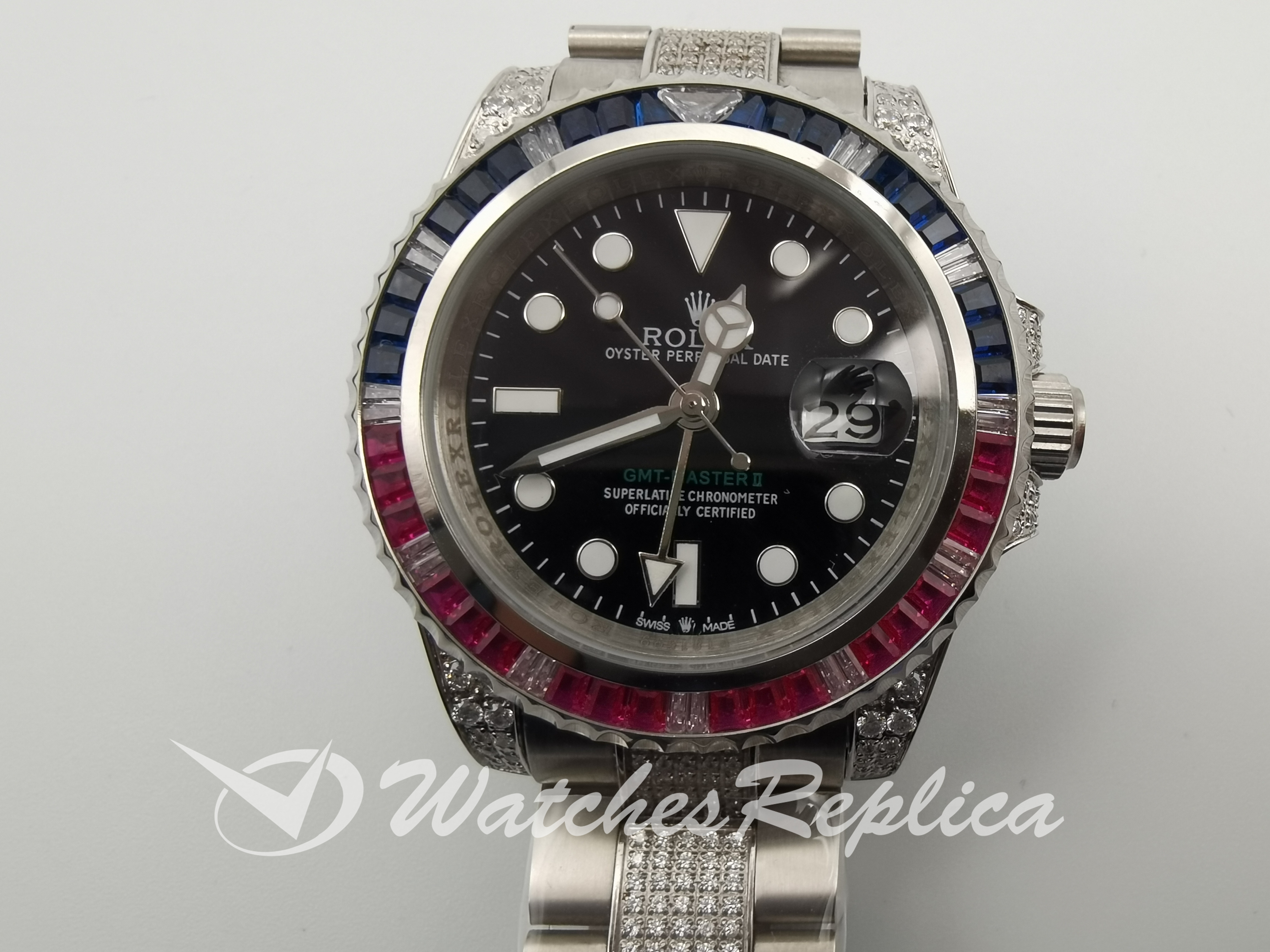 Replica Rolex GMT Master II Automatic Gem Set Bezel Black Dial Men’s Watch 40 MM
