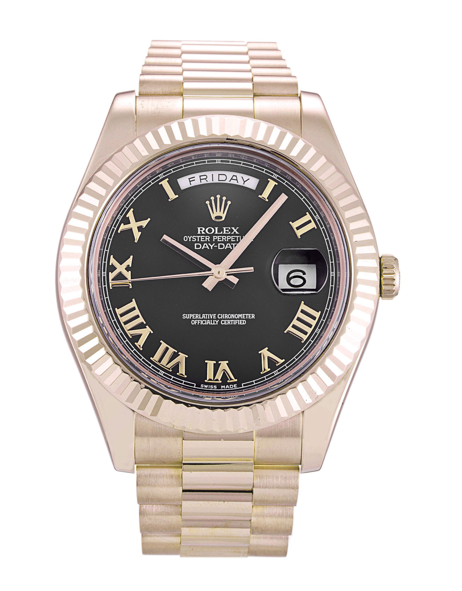 Replica Rolex Day Date II Black Dial Roman Markers 218235 41MM