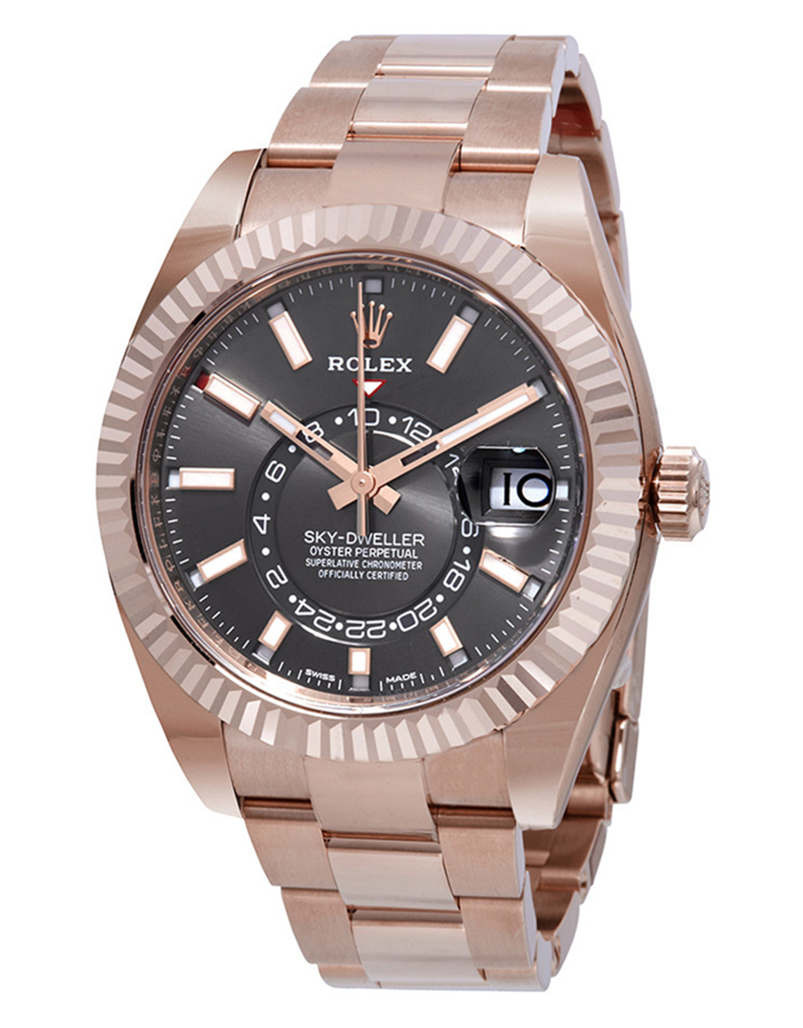 Replica Rolex Sky Dweller Dark Rhodium Dial Automatic Men’s 18kt Everrose Gold Oyster Watch 42 MM