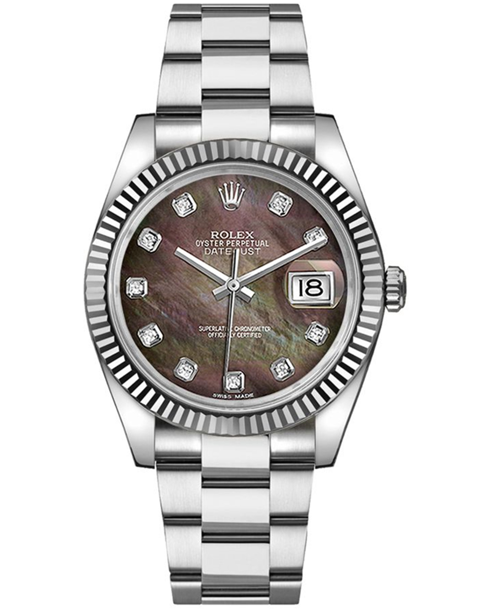 Replica Rolex Datejust Pearl Black Diamond Dial Women’s Watch 116234-0149 36MM