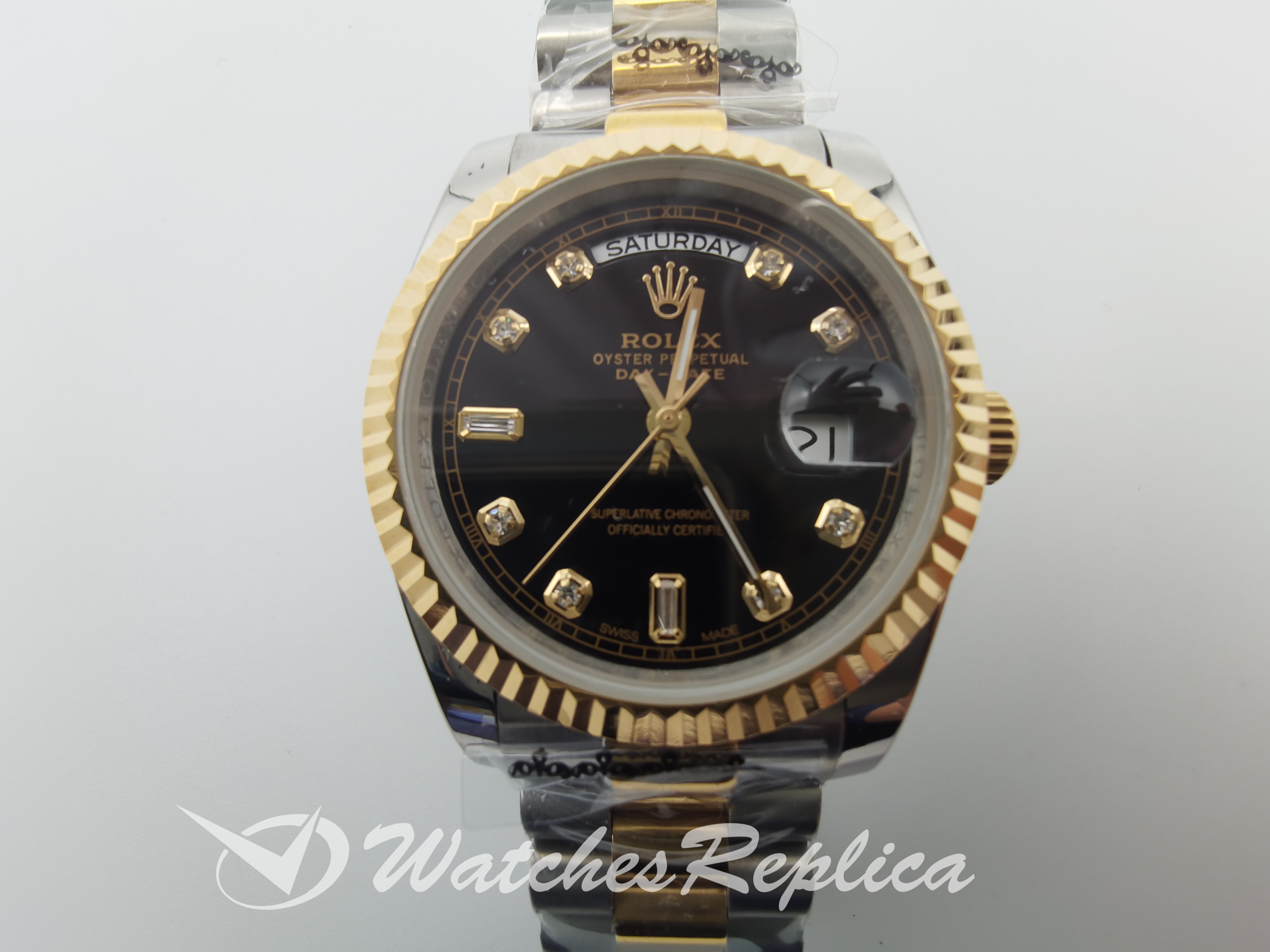 Rolex Day-Date 118238 36mm Stainless Steel And Black Dial For Men Watch