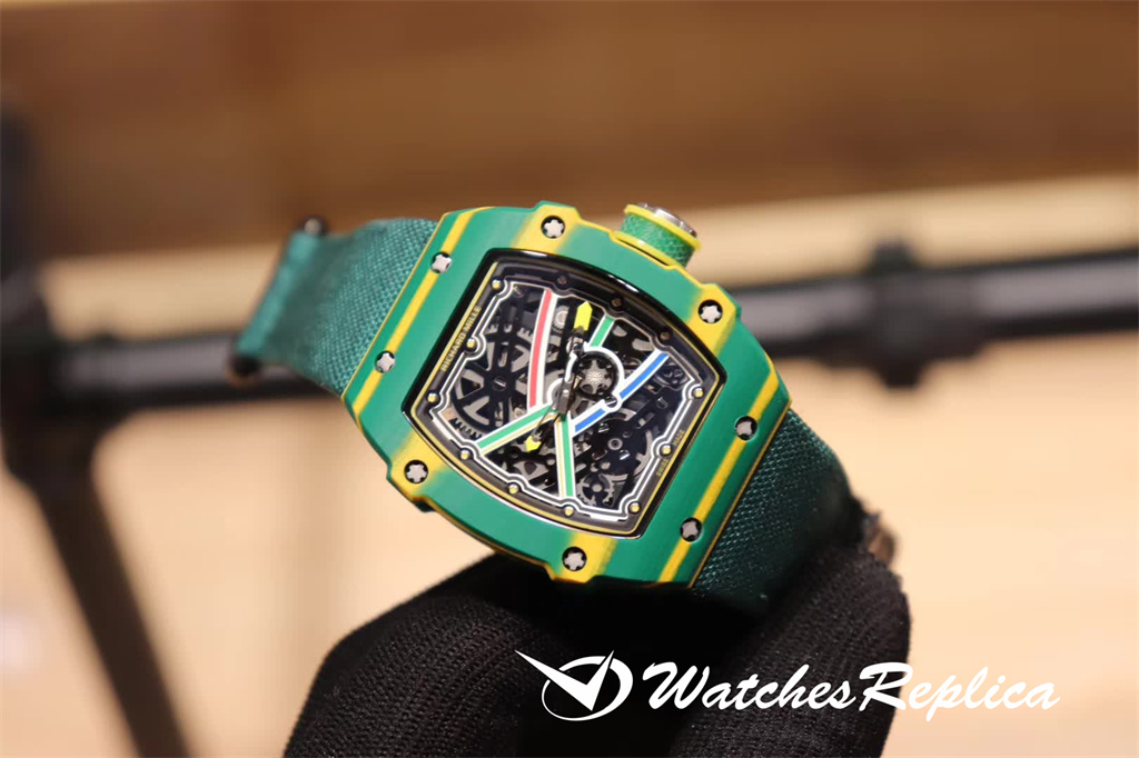 The case of the RM68-01 is crafted from carbon fiber, offering both strength and a lightweight feel, while the black bezel adds a sleek touch. The ergonomic design ensures comfort, with the case thickness and height varying strategically to fit the wrist’s natural contours. This attention to detail makes wearing this richard mille replica not only a statement of style but also of comfort. The watch’s crown features a non-slip texture, facilitating ease of use, which is crucial for such a high-precision instrument.
