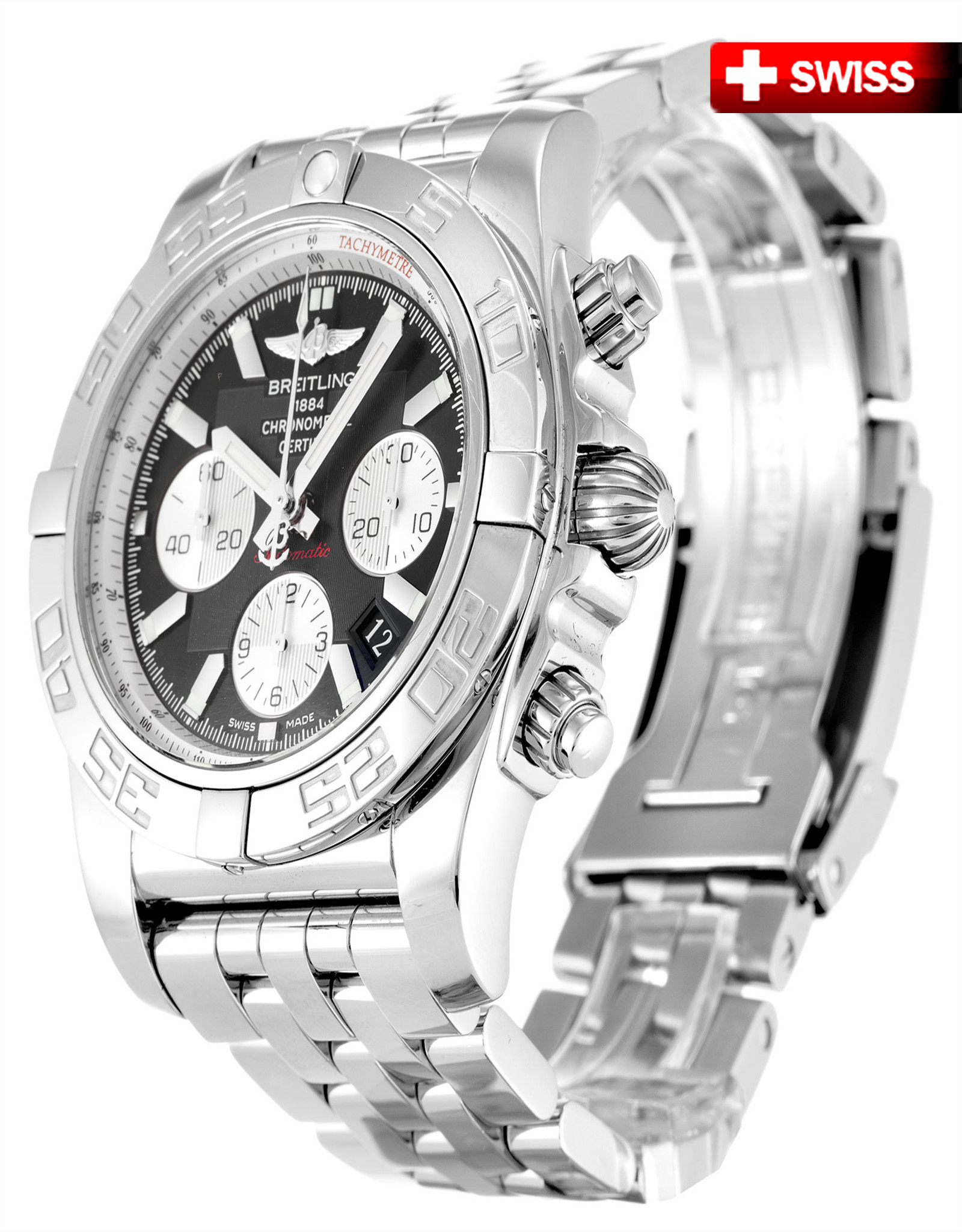 Replica Breitling Super Avenger Black Dial Number Markers A13370 48.4MM