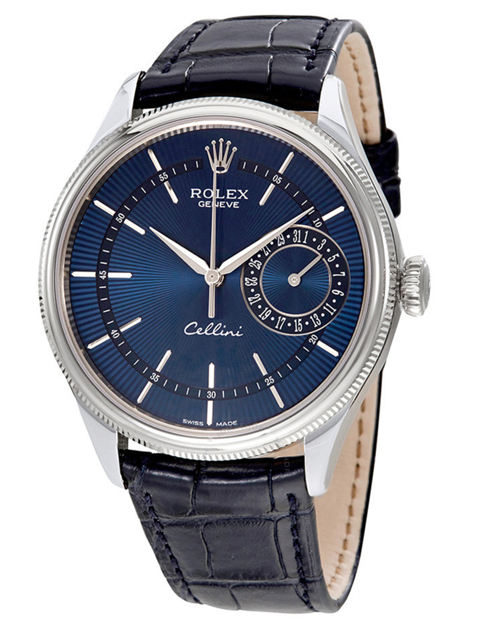 Replica Rolex Cellini Blue Guilloche Dial Automatic Men’s Leather Watch 39MM