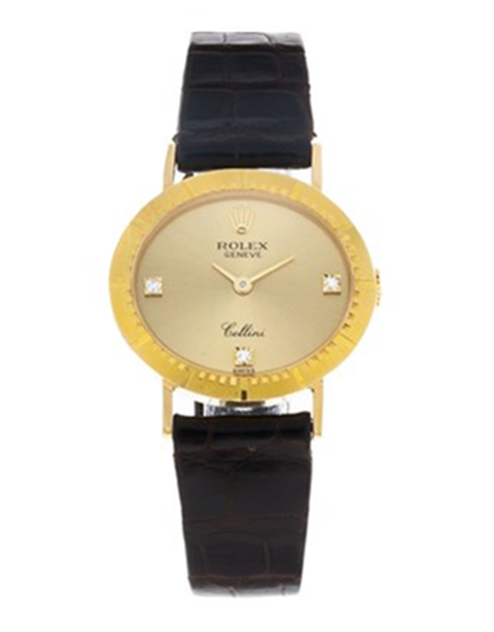 Replica Rolex Cellini Champagne Diamond Dial Leather Strap 166269 25MM