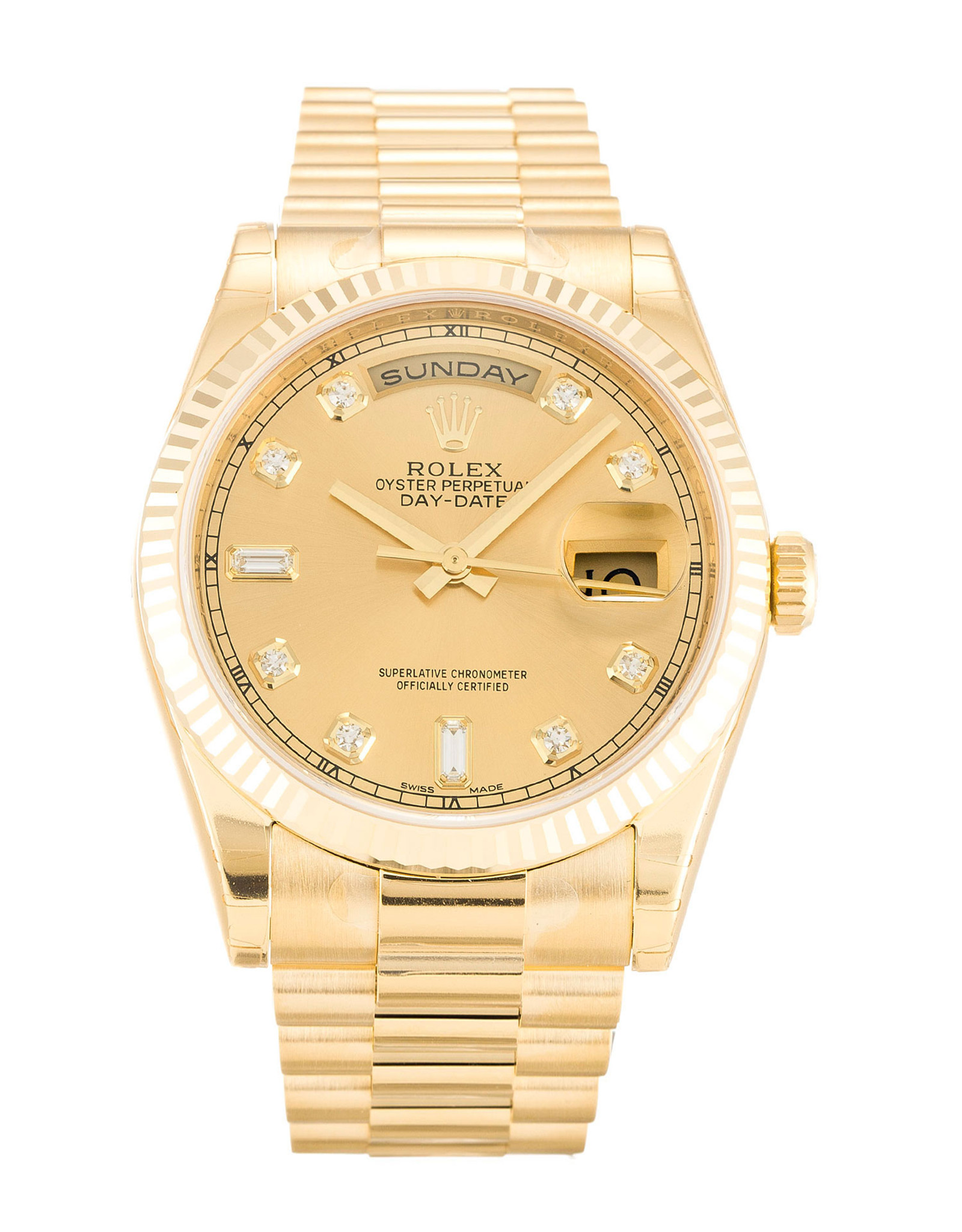Replica Rolex Day Date Yellow Gold Dial Diamond Markers 118238 36MM
