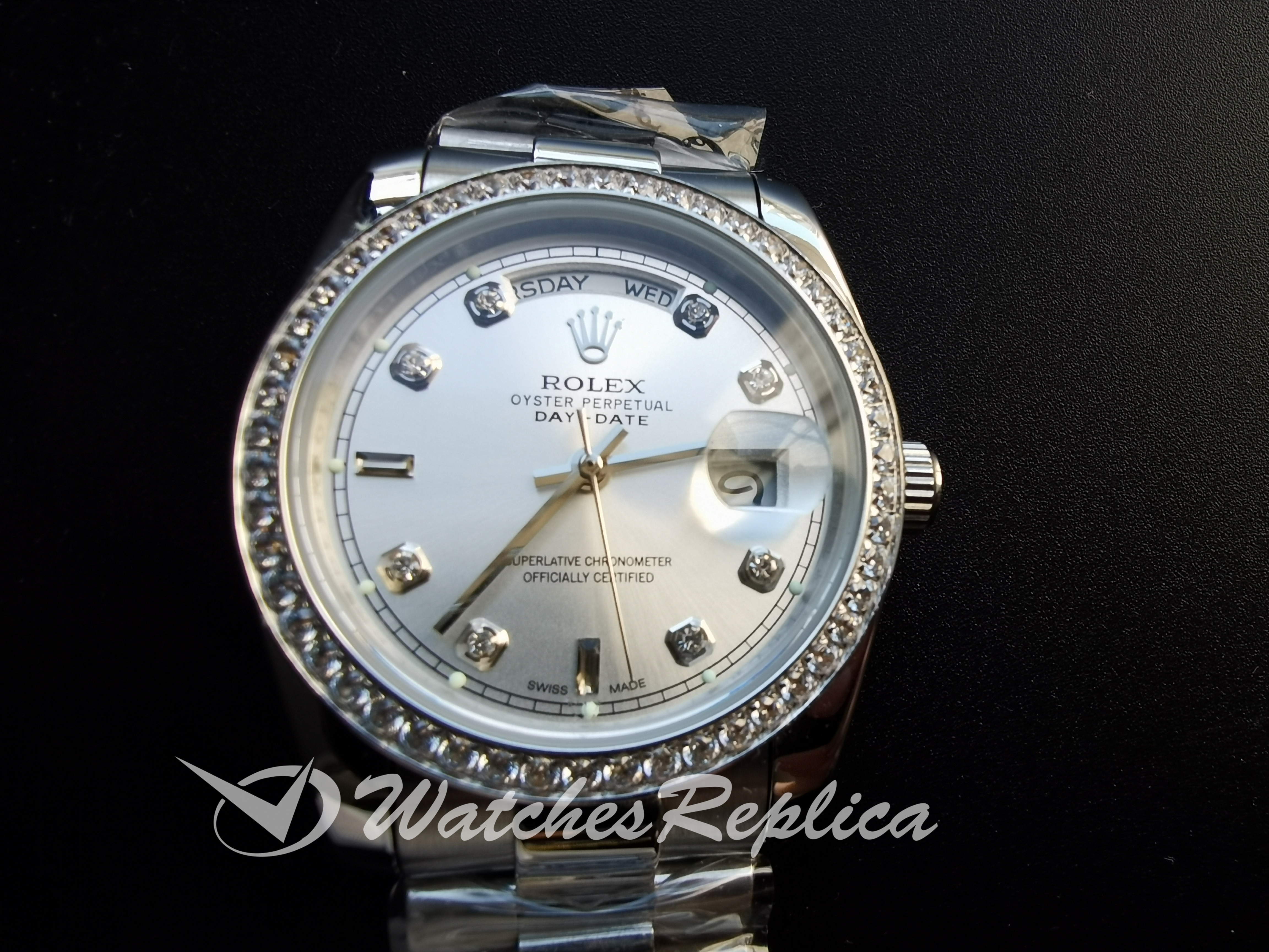 Replica Rolex Day Date Diamond Markers Stainless Steel Strap 18946 36MM