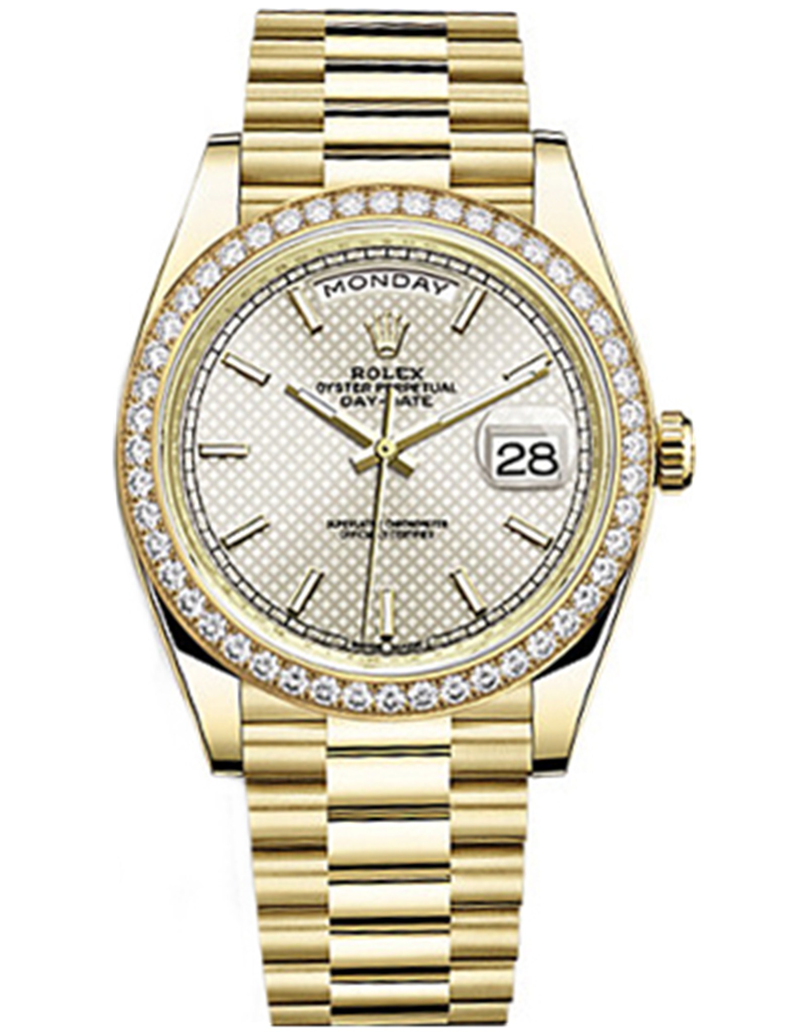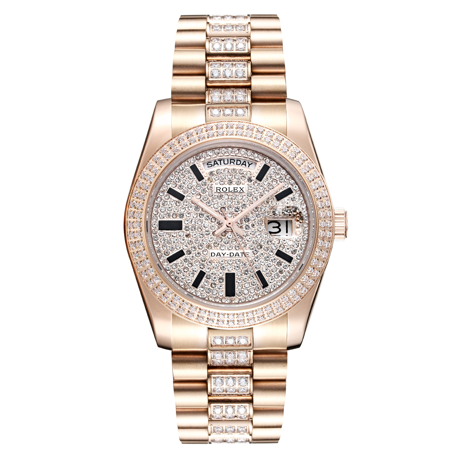 Replica Rolex Day Date Automatic Gold Diamond Pave Dial Yellow Gold President Watch 40MM