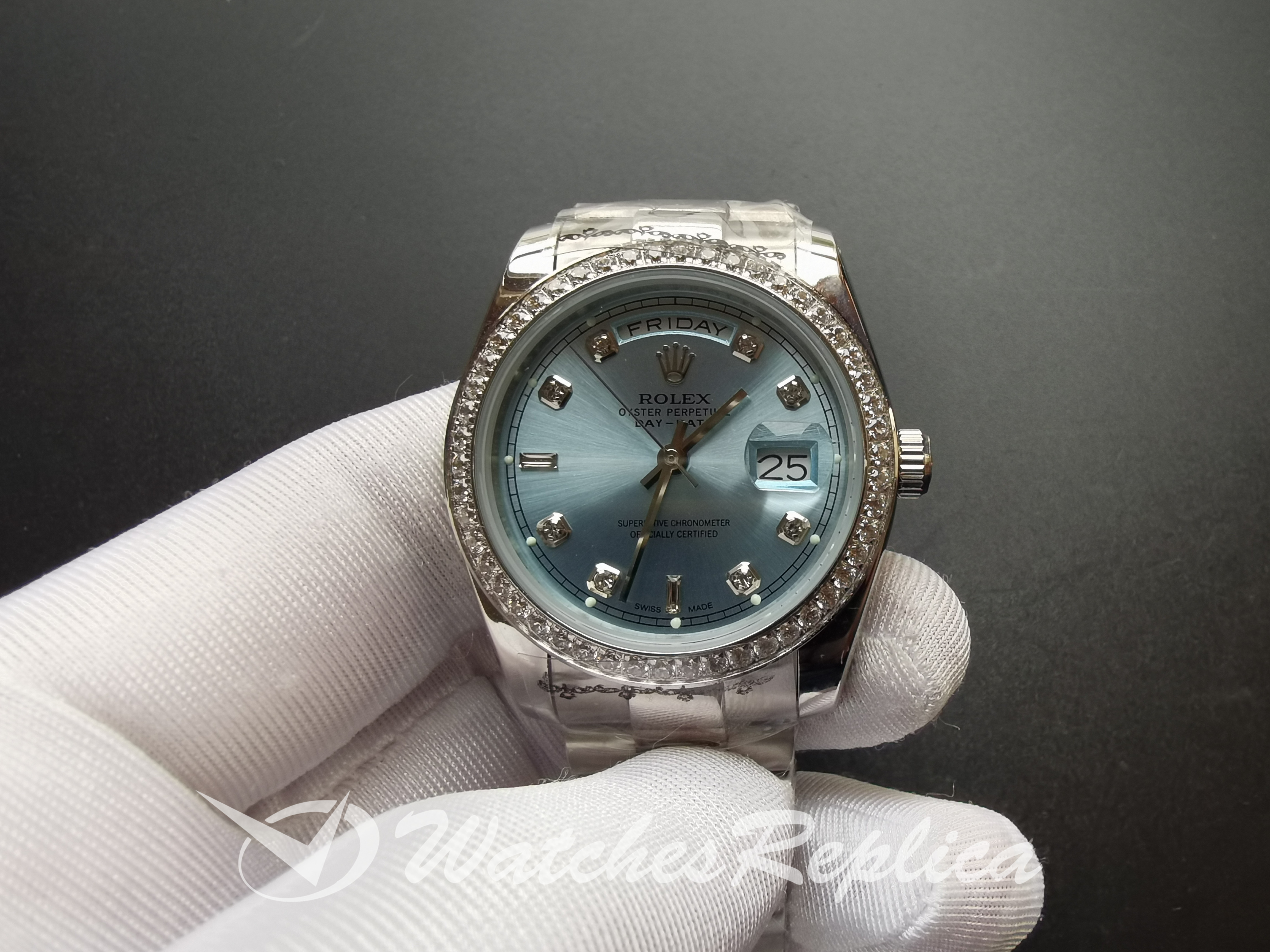 Rolex Day-date 118346 Ice Blue Dial Stainless Steel 36mm For Men Watch