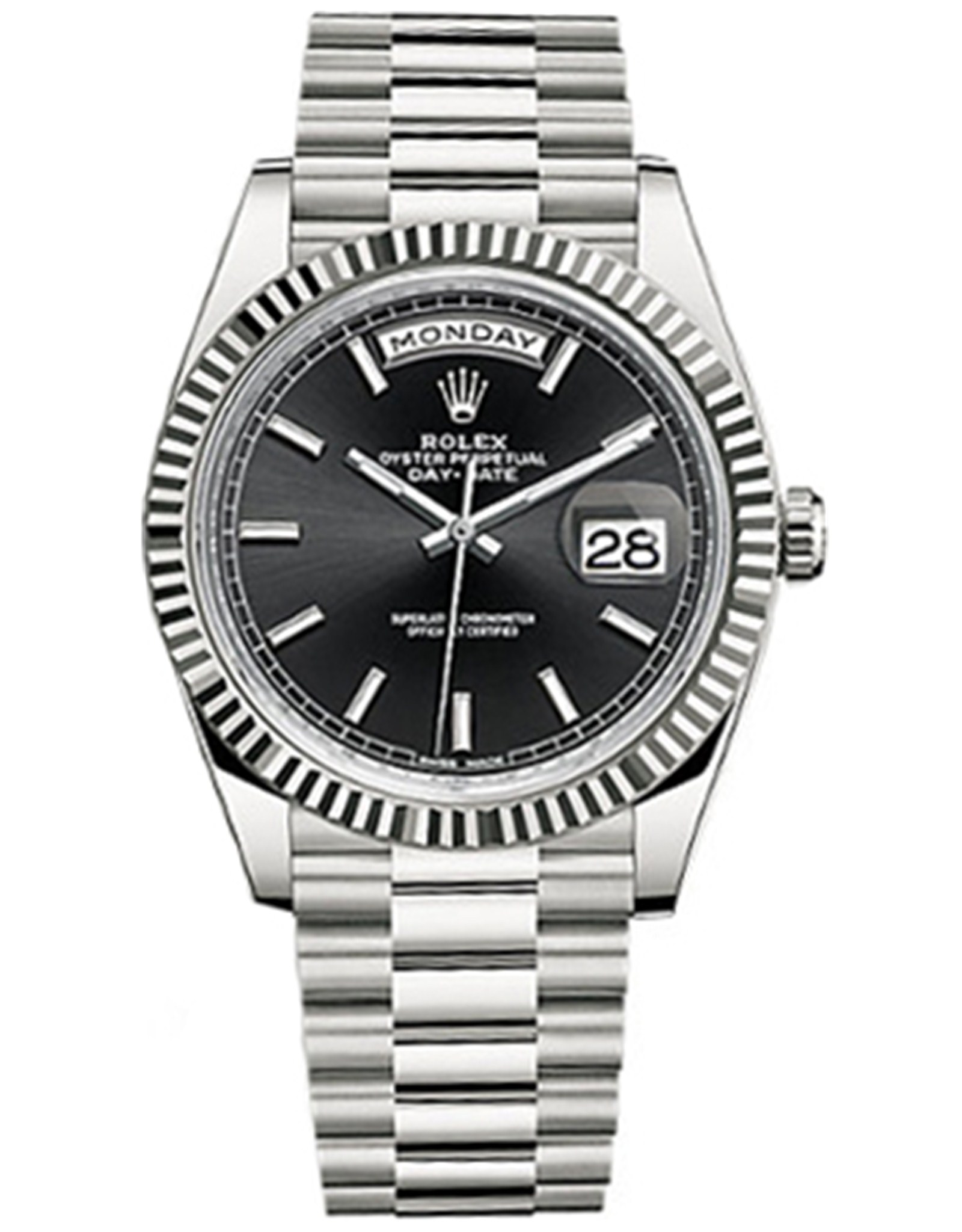 Replica Rolex Day Date Black Dial White Gold Case 228239 40MM