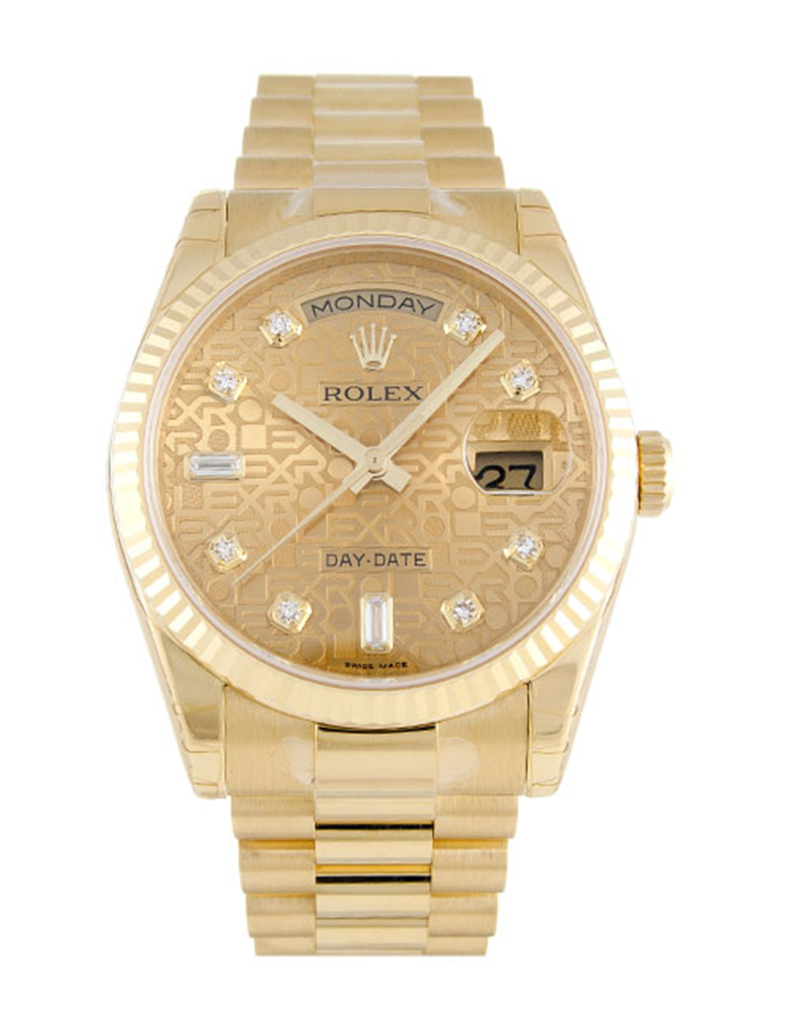 Replica Rolex Day Date Yellow Gold Dial Diamond Markers 118238 36MM