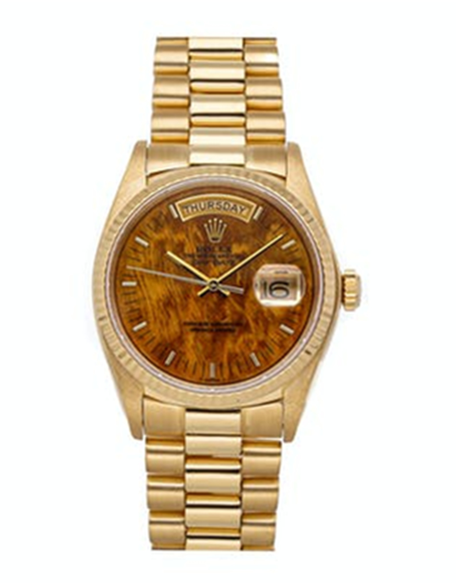 Replica Rolex Day Date Automatic Watch Features Brown Dial Yellow Gold Case (18038) 36MM