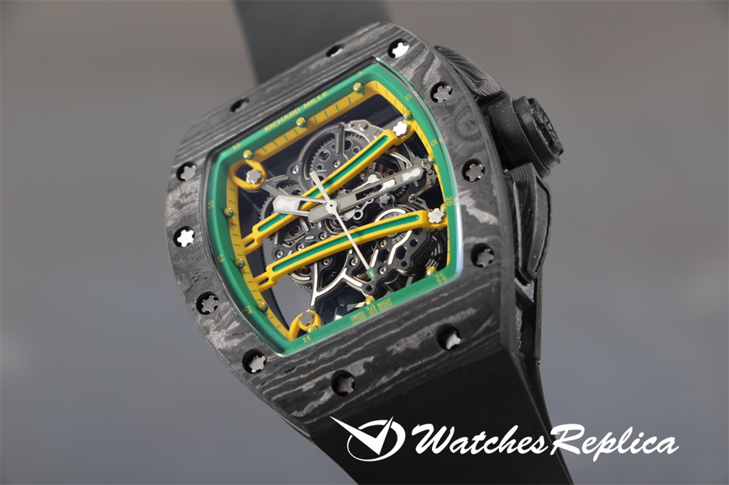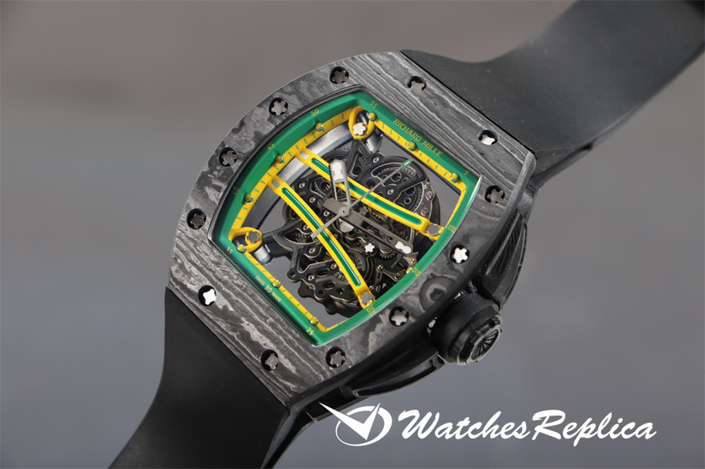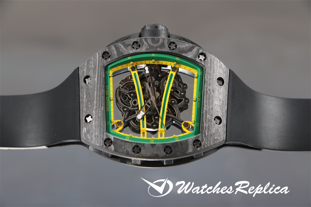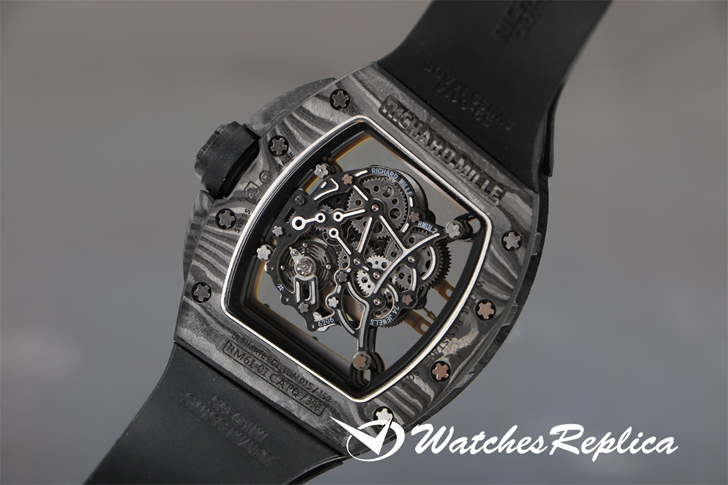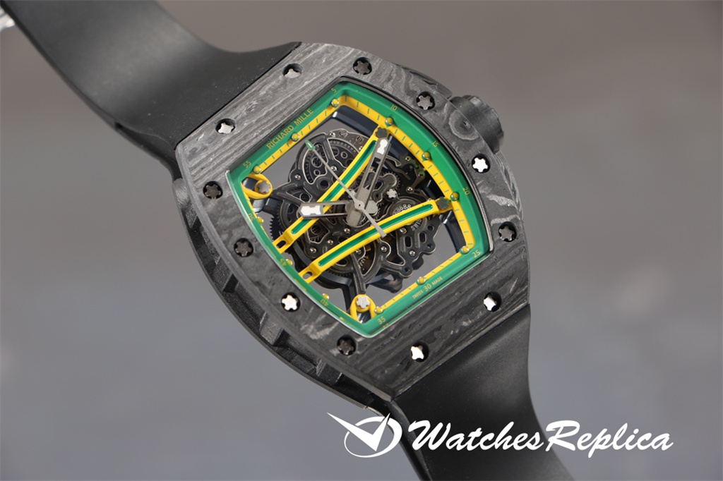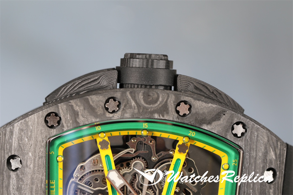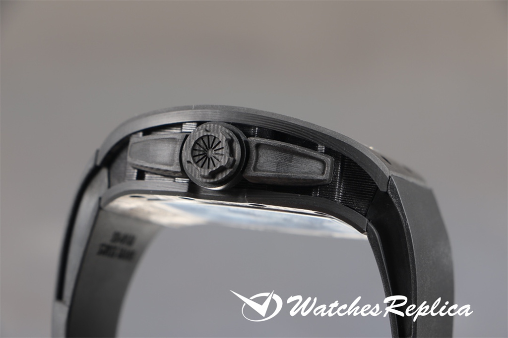Richard Mille Miller RM11-03 series, perfect ergonomic design coincides with the pursuit of perfect Brand iconic building. Each component of RM 011 is an aesthetic expression of its function. The RM 11-03 watch retains the most recognizable iconic shape, but the craftsmanship it uses is still far beyond the previous. The case is made of titanium steel, and they all have a finely crafted brushed surface, which is matched with the polished chamfer to show a sharp contrast. The timing button is clearly marked with functional fonts (Start/Stop and Reset/Fly-back). Its design is inspired by the pedals in the F1 car. All these optimization changes make this RM 11-03 flyback timing. The automatic watch is more sporty and trendy than the previous style.