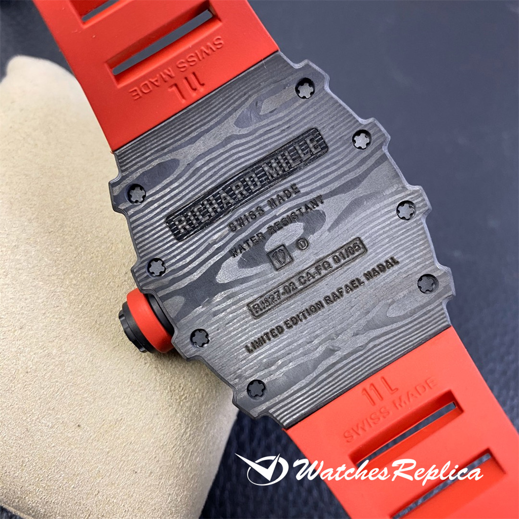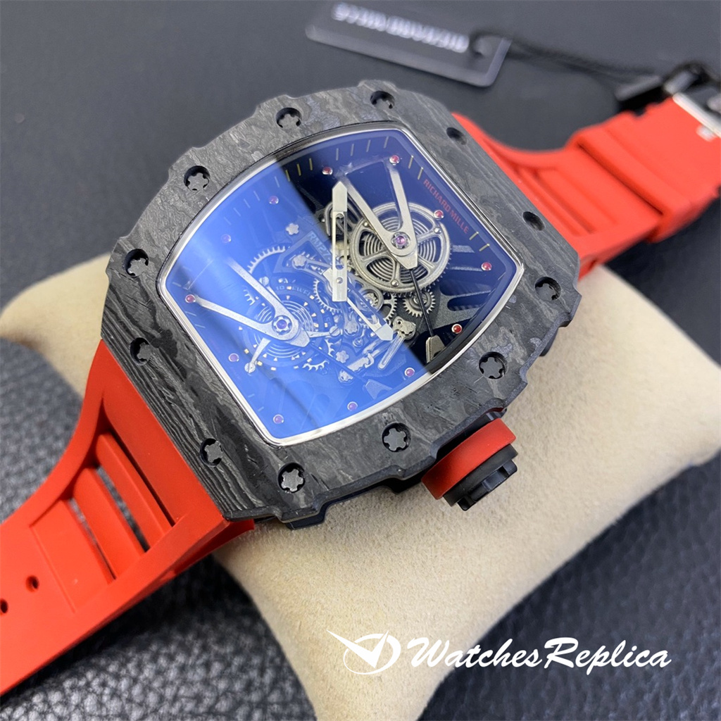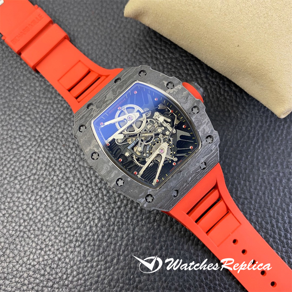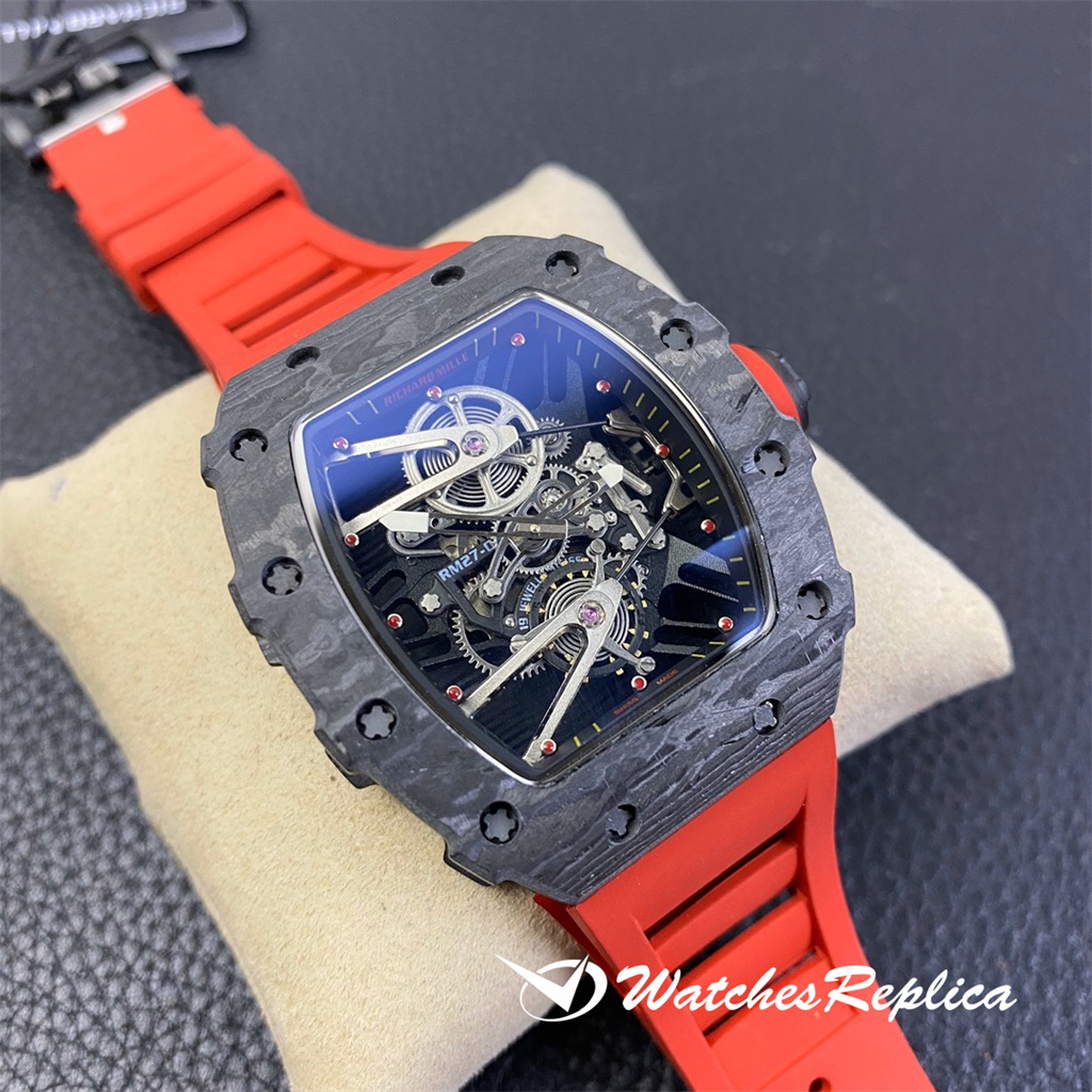 Richard Mille RM35-02 full carbon fiber series. This replica case and back cover use high-density imported carbon fiber material. The carbon fiber case back and the titanium inner tank use synchronous CNC on both sides. Processing! There is no gap between the upper and lower sides of the shell and the left and right sides. The rubber strap/nylon strap imported from Malaysia gives it a super tough and soft feeling. According to the original principle, the titanium metal material is used as the inner tank and the most cutting-edge electric Sparks cut into the air technology! Equipped with the original imported mechanical movement, sapphire crystal glass, the unique and exaggerated case dial design is just to meet you with unique personality