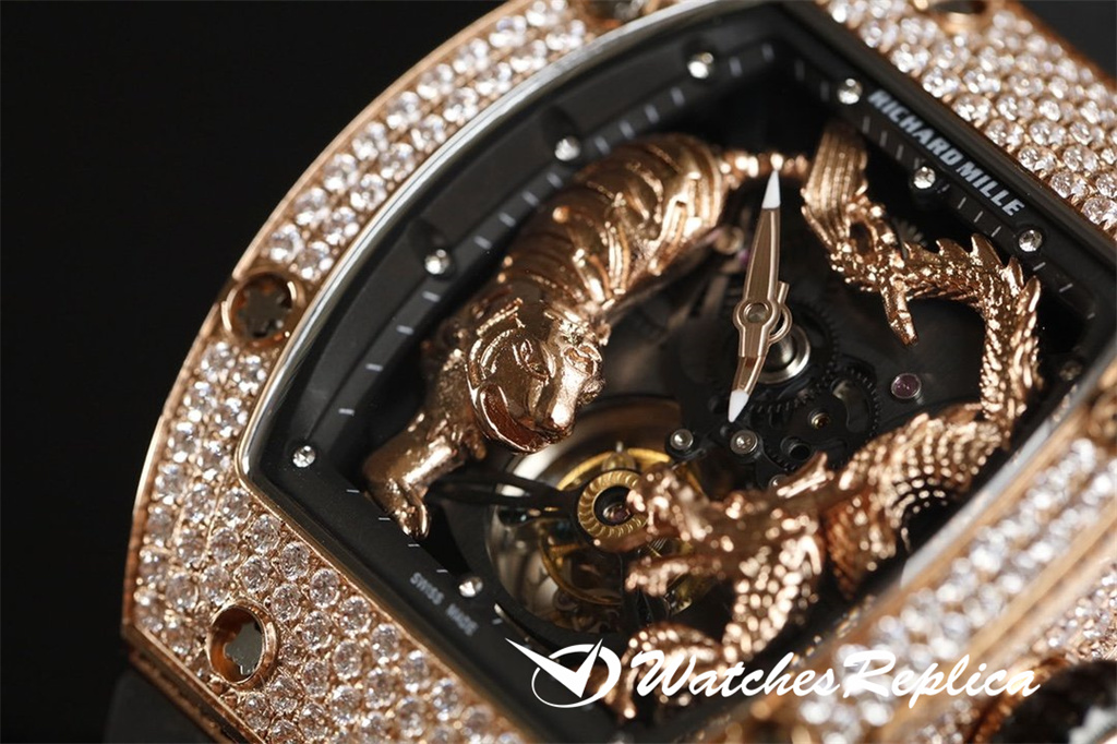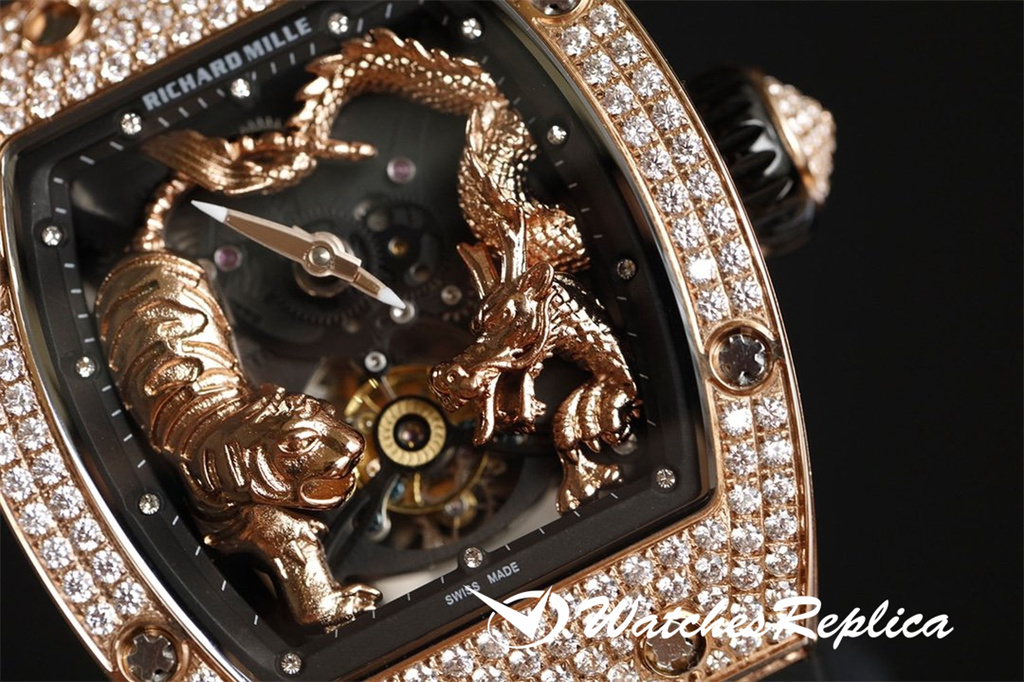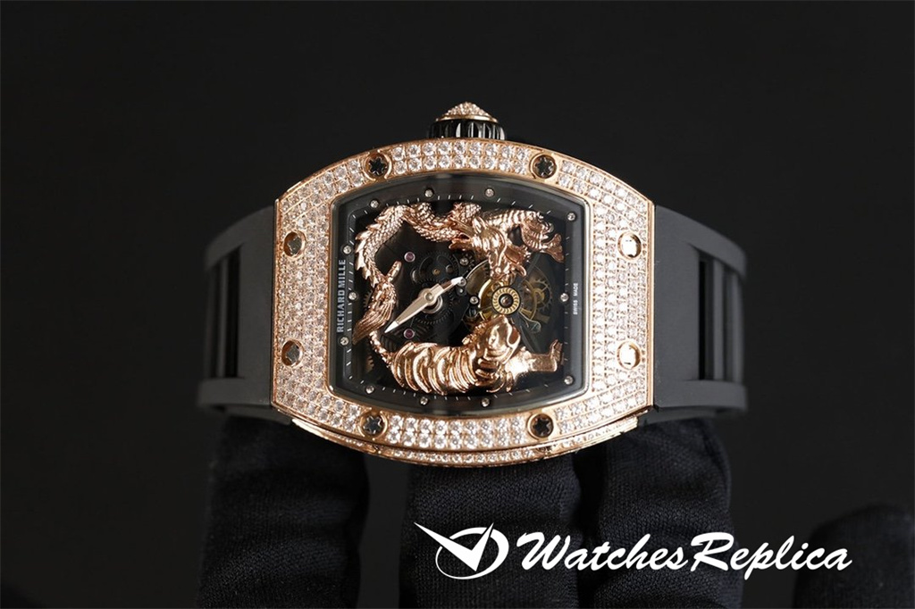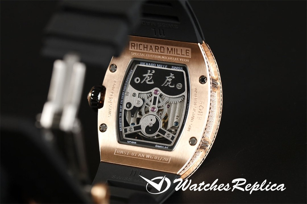 The Richard Mille RM52-01 true tourbillon reinterprets the essence of the RICHARD MILLE skull and breaks through the bugs of multiple versions, so that the majority of iron fans can have the right size, real movement, and perfect detail. High copy. Reasons for starting: 1. The size is close: the official length and width: 50*43*16mm, the length and width of the JB factory: 49.8*44.3*16.4mm; 2. Real bearing: the ruby in the skull’s mouth is the real bearing of the tourbillon, and Non-decorative, gemstones correspond to the center axis of the tourbillon wrapped in the upper and lower jaws, as if swallowing an energy ball, so that the original sci-fi mood can be expressed; 3. The details are in place: the inner wall of the left side of the inner cover of the case is printed with the stamp of RM052 as the original , The size and depth of the right eye gear is close to the original, the center of the forehead is ruby red and transparent, the frosted buckle, and the imported Thai raw rubber strap; 4. Movement alignment: thanks to the position of the tourbillon and the original size, viewed from the back Below the skull of the skull, you can clearly see the running process of the tourbillon coaxial with gems. From the front, the black balance wheel is just blocked by the skull’s jaw, leaving only the escape wheel swimming under the skull; 5. Internal and external repairs : The movement is a real tourbillon movement customized by the Shanghai Movement Factory. Each watch has undergone a high-strength simulator QE running time, and has enhanced waterproofing. JB Factory Be more attentive with the core! This is another masterpiece after the double tourbillon, RM001, Roger Dubuis King, RM053, Rolex Tourbillon, classic fusion! Each JBFactory tourbillon is presented with a leather protective bag.