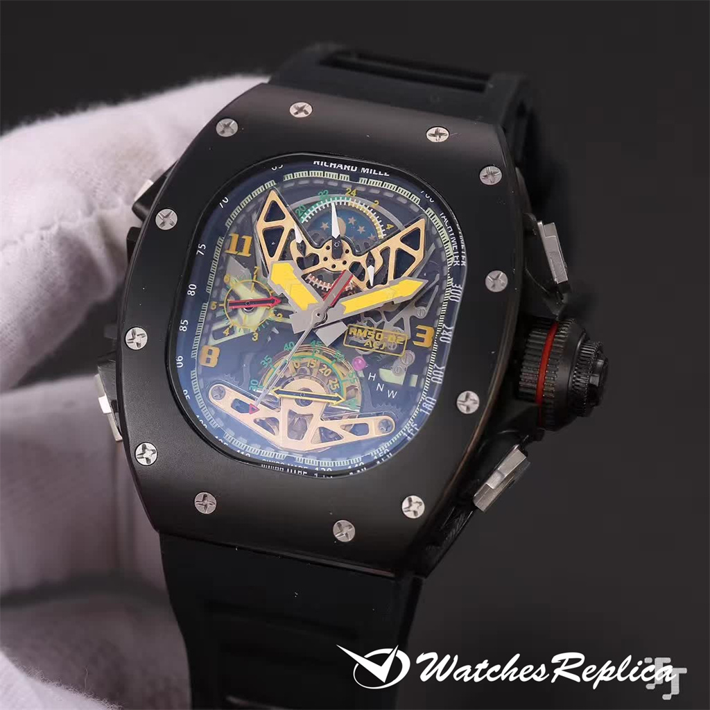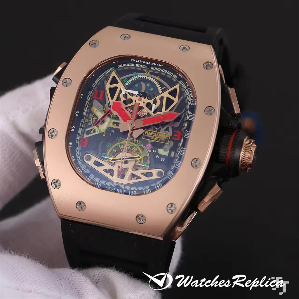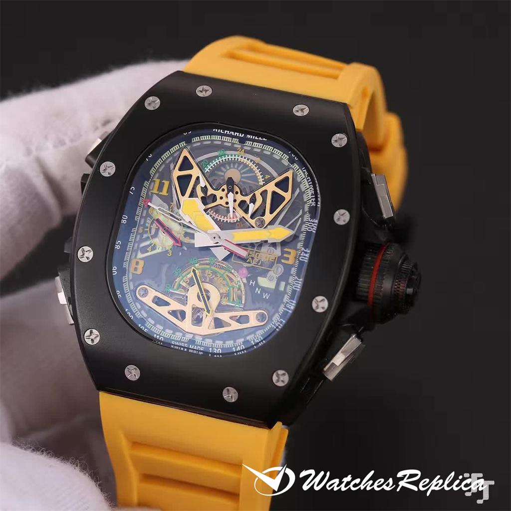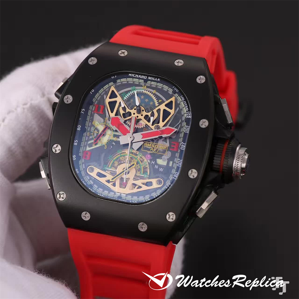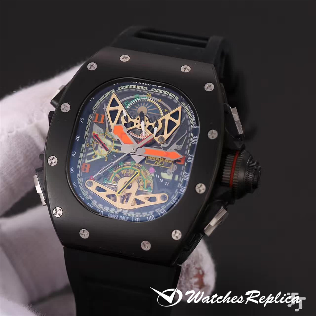 Richard Mille RM52-01 hollow skull watch. The classic wine barrel shape shell is made of new material zirconia polycrystalline ceramics, and it uses the advanced technology of nanometer anti-tarnish and anti-wear. The outline of the skull is prominent, the shape is domineering and unruly, with shocking charm. The hollow design, the gears fly between the dials, presenting the beauty of machinery. Luxury and noble quality comes from size 43x50mm