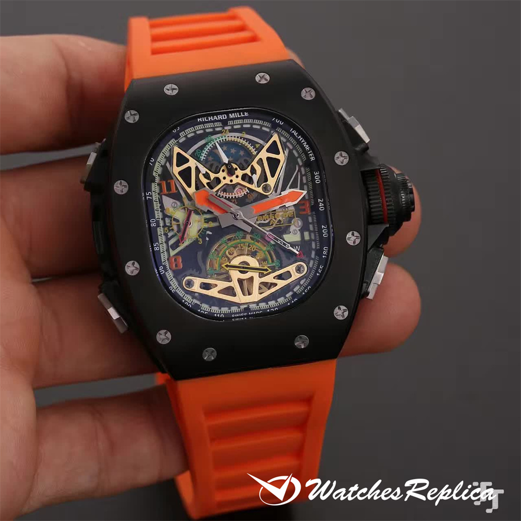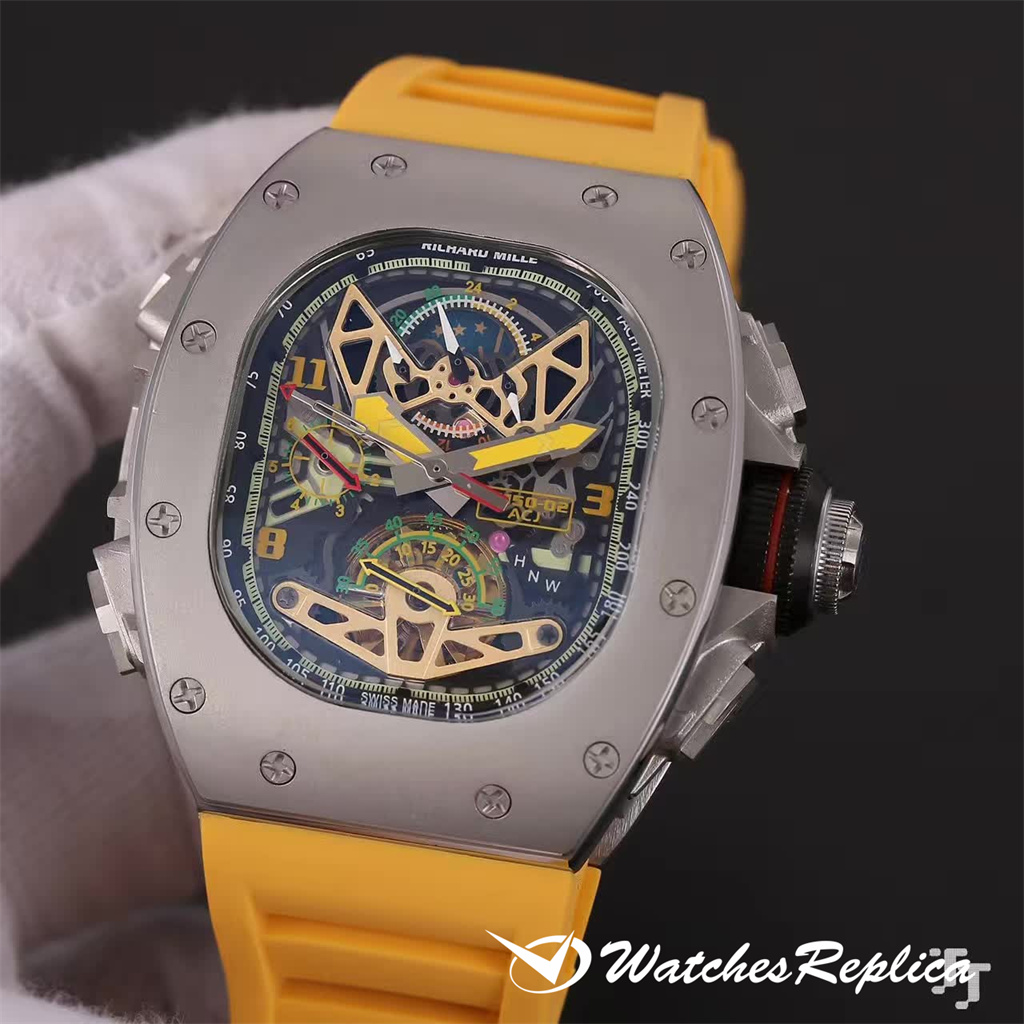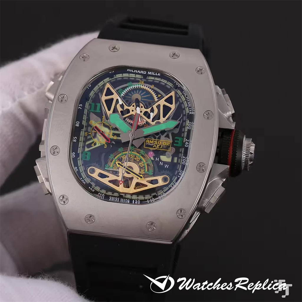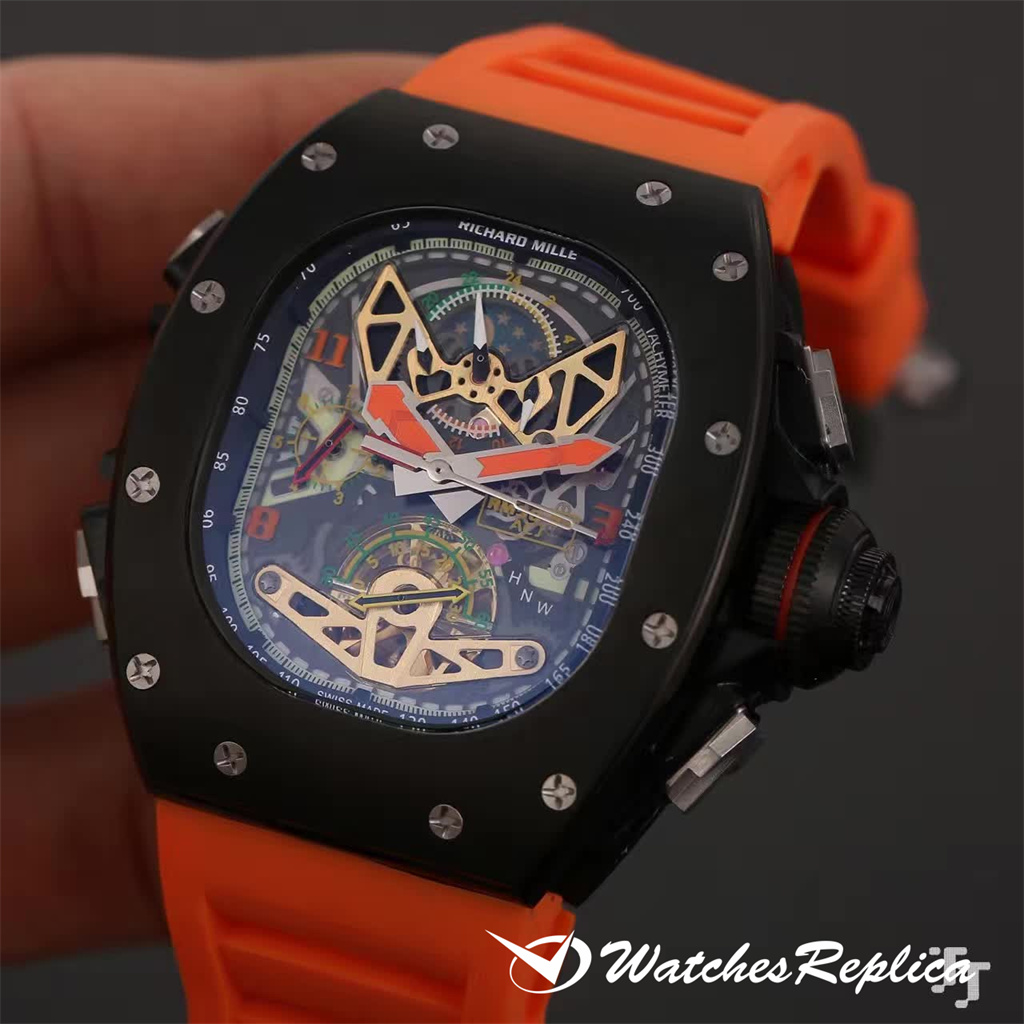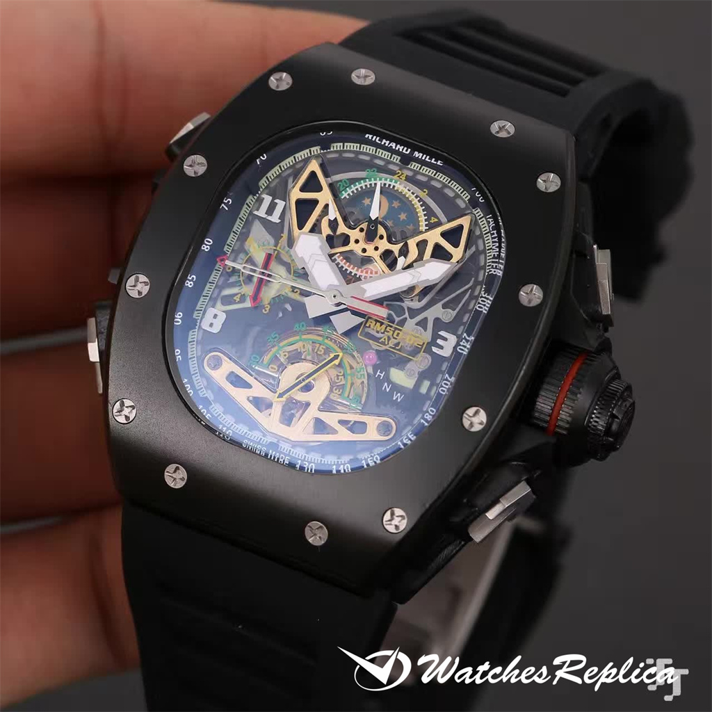 Richard Mille RM52-01 hollow skull watch. The classic wine barrel shape shell is made of new material zirconia polycrystalline ceramics, and it uses the advanced technology of nanometer anti-tarnish and anti-wear. The outline of the skull is prominent, the shape is domineering and unruly, with shocking charm. The hollow design, the gears fly between the dials, presenting the beauty of machinery. Luxury and noble quality comes from size 43x50mm