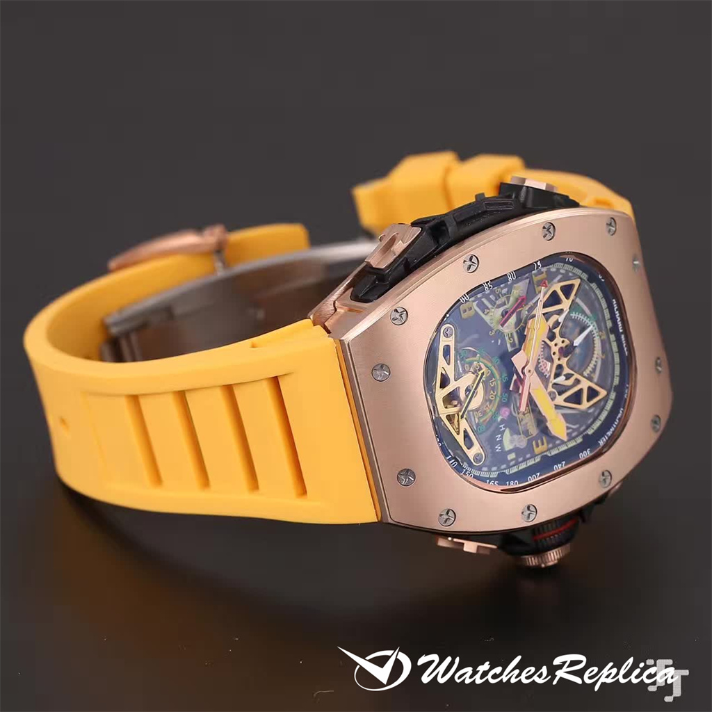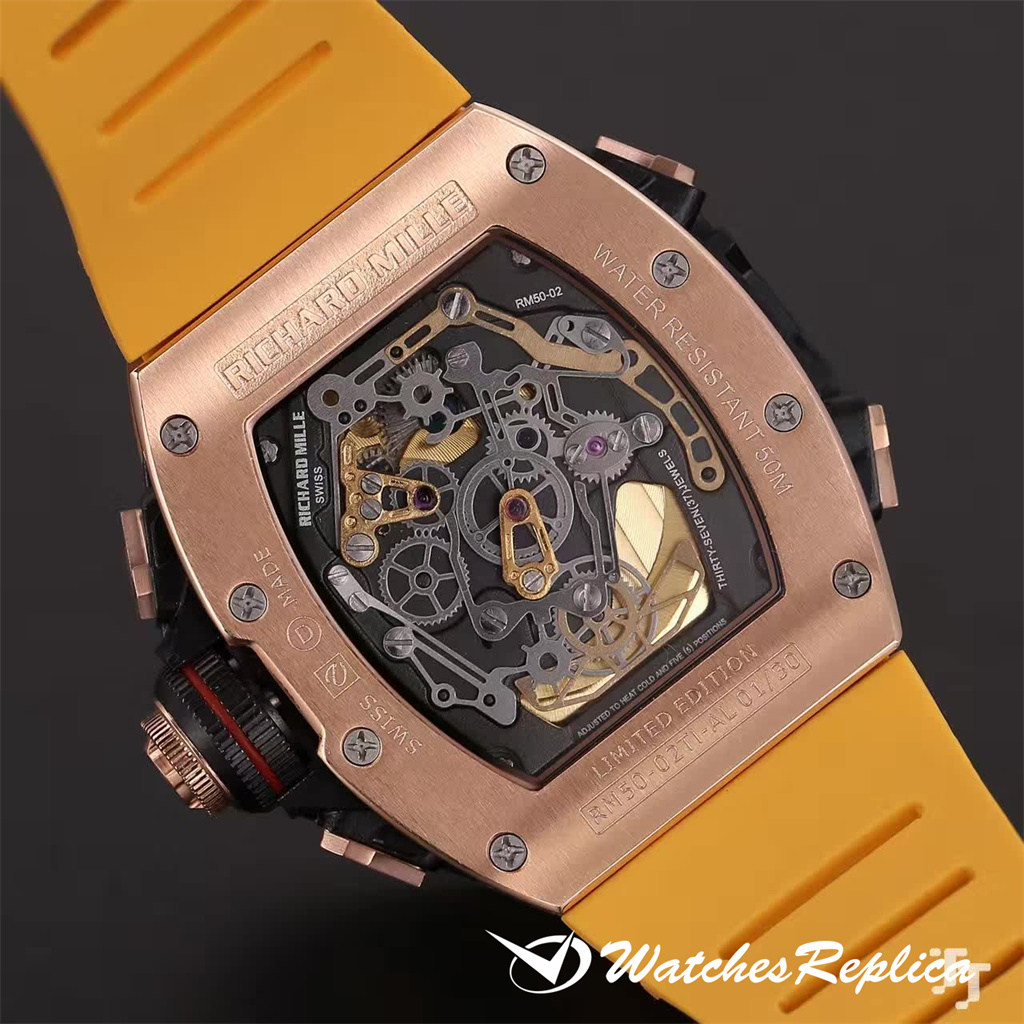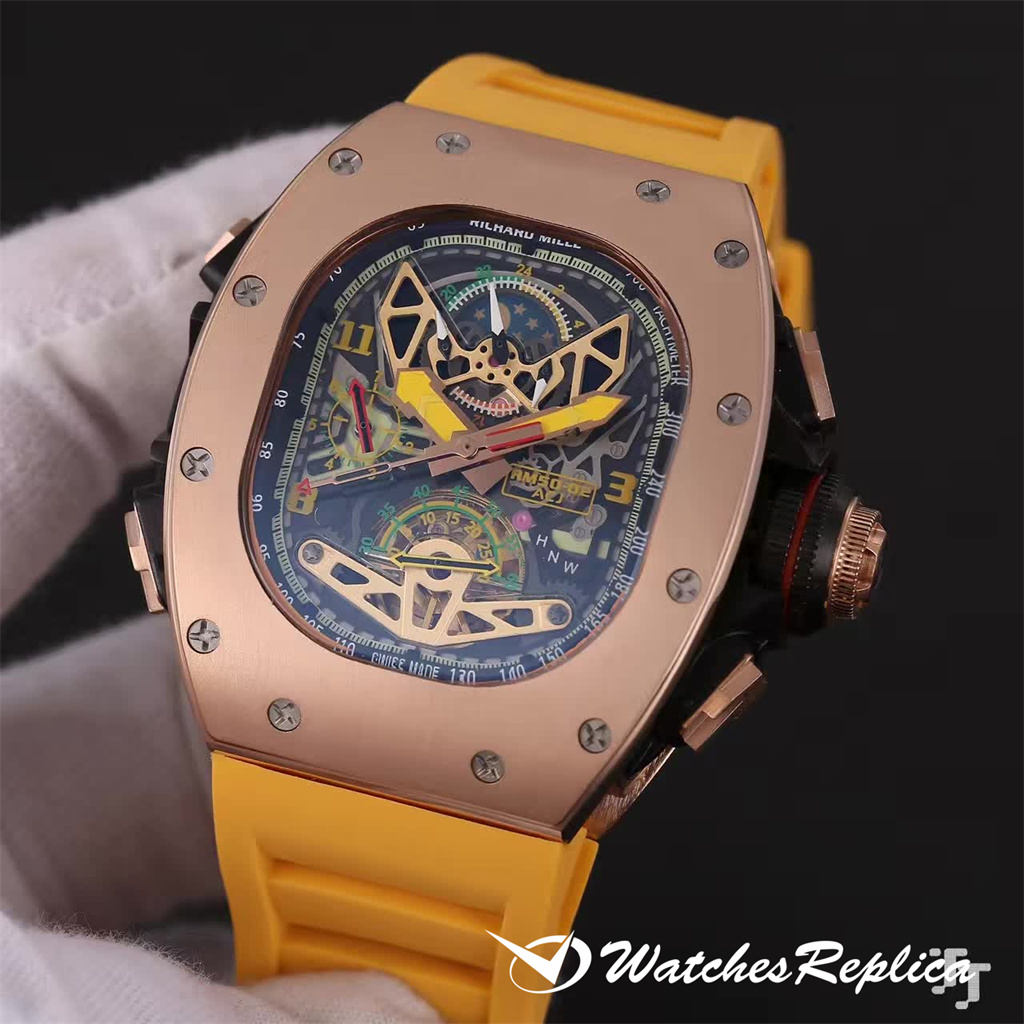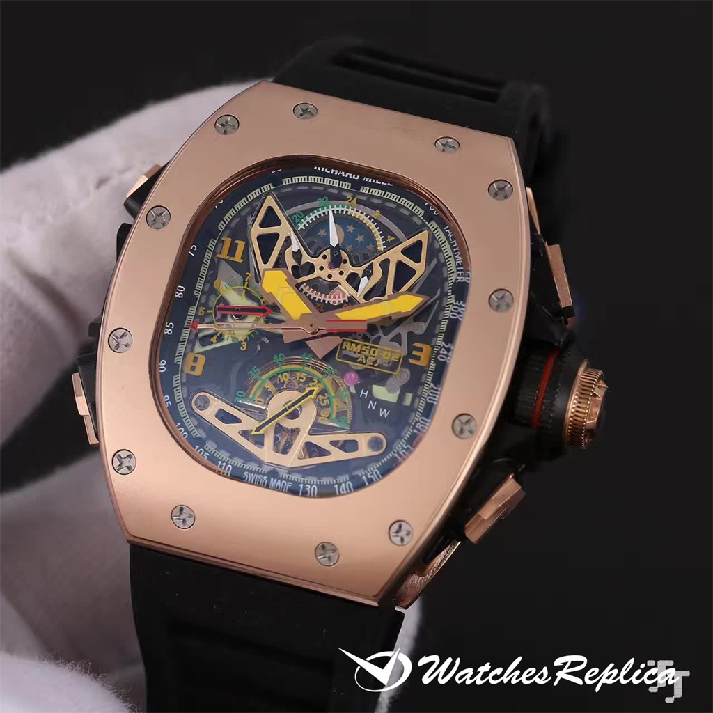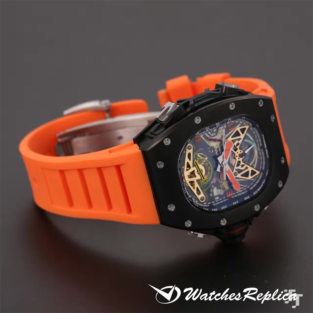 Richard Mille RM52-01 hollow skull watch. The classic wine barrel shape shell is made of new material zirconia polycrystalline ceramics, and it uses the advanced technology of nanometer anti-tarnish and anti-wear. The outline of the skull is prominent, the shape is domineering and unruly, with shocking charm. The hollow design, the gears fly between the dials, presenting the beauty of machinery. Luxury and noble quality comes from size 43x50mm
