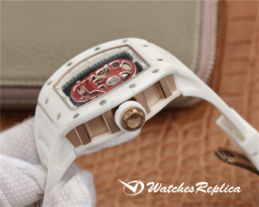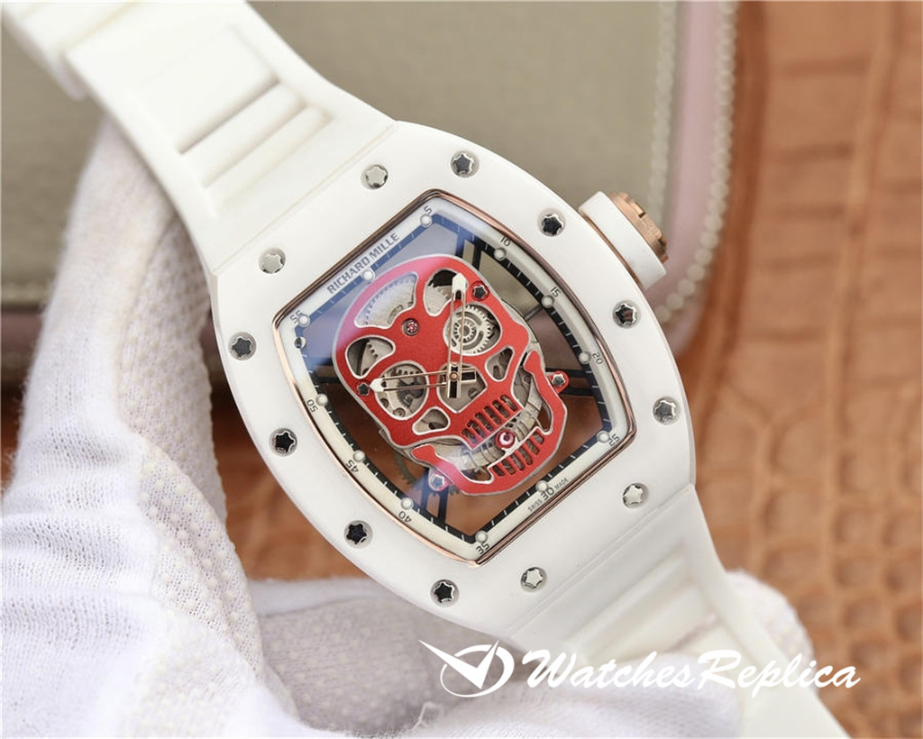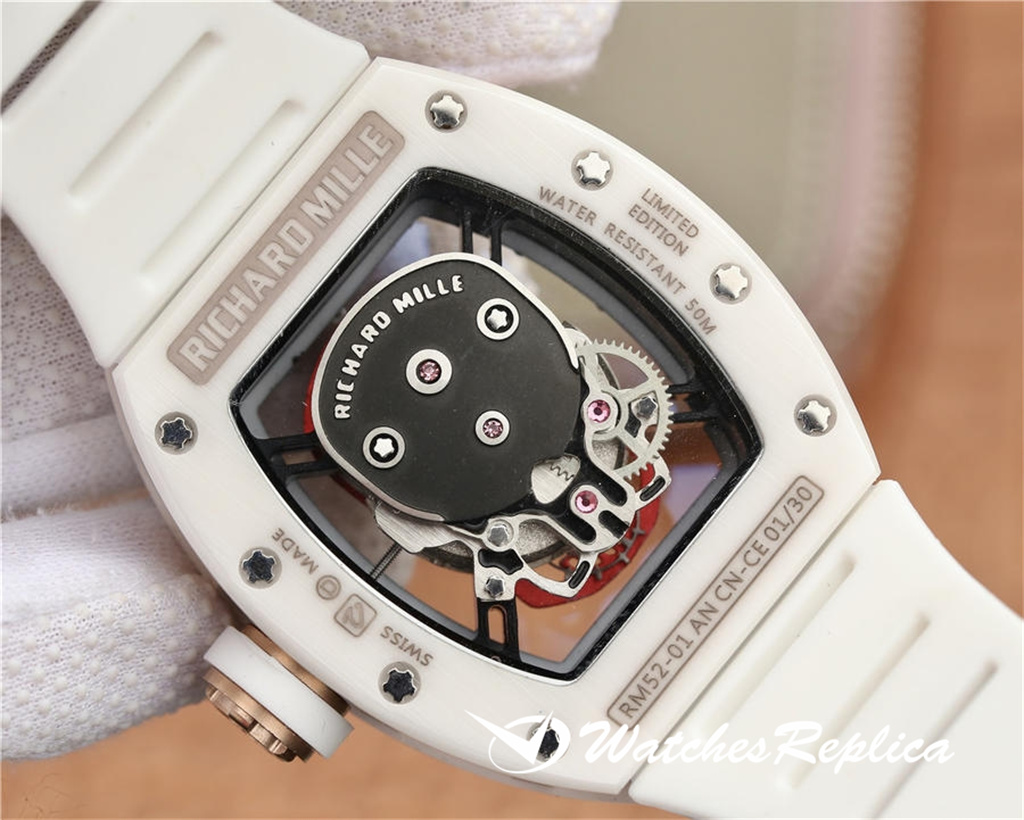 Richard Mille RM53-01 TPT carbon fiber watch is full of movement and vitality. The case is made of TPT carbon fiber, which is extremely strong, shock-resistant and damage-resistant. The unique corrugated luster of the carbon fiber and the sharp line of the case highlight the sporty style of this watch; through the anti-glare mirror, the suspension can be seen Skeleton movement, the movement is suspended in the case with 4 steel cables, which can withstand super strong external impact protection.