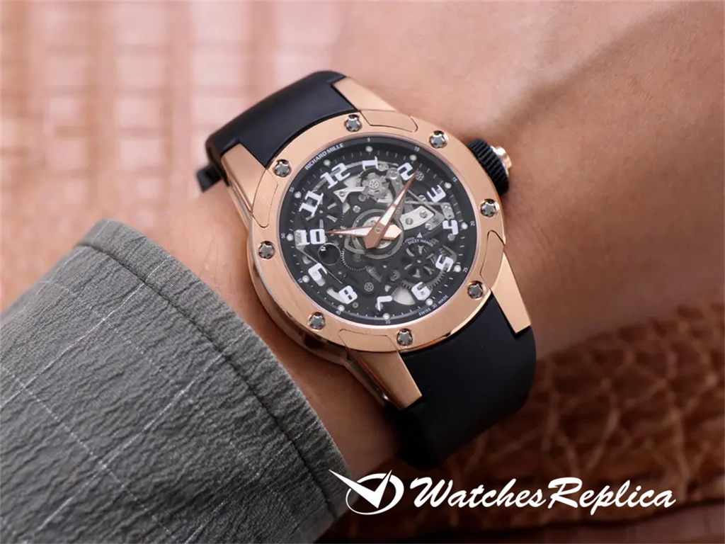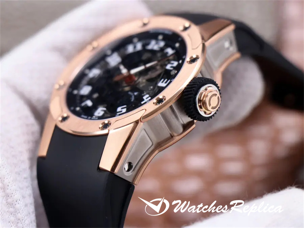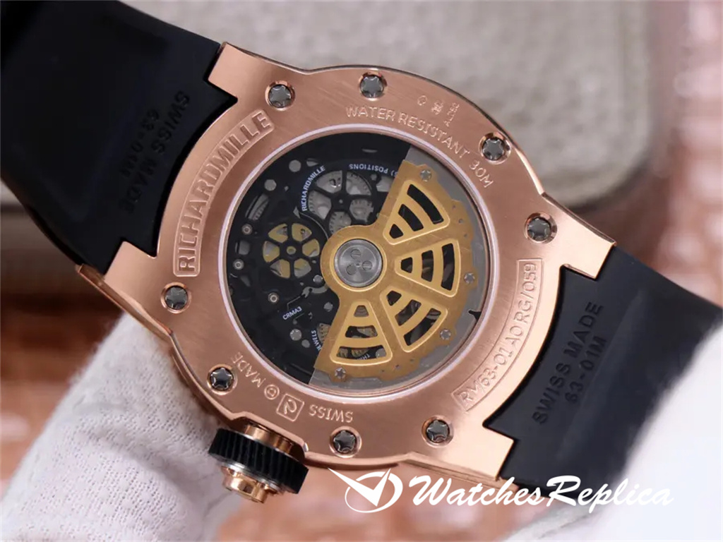 Richard Mille RichardMille RM53-01 equipped with imported 8215 mechanical size 43*50 mm case made of extremely strong, shock-resistant and damage-resistant TPT carbon fiber processing, carbon fiber unique corrugated luster and sharp case lines, It also highlights the sporty style of this watch; through the anti-glare watch mirror, you can see the suspended hollow movement. The movement is suspended in the case by 4 steel cables, which can withstand strong external impact protection.