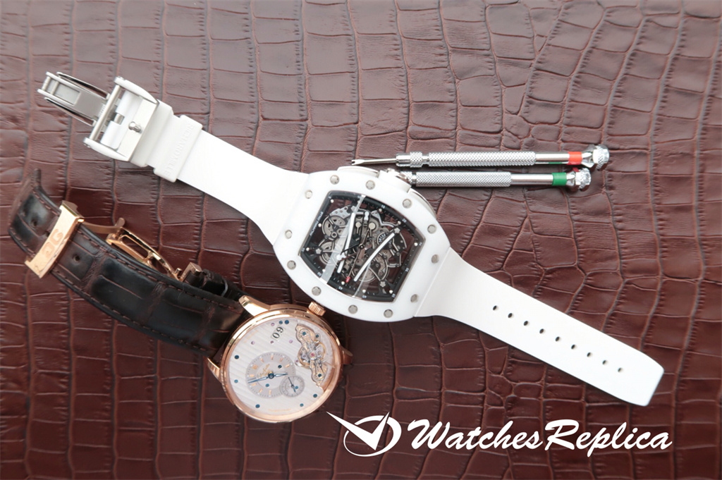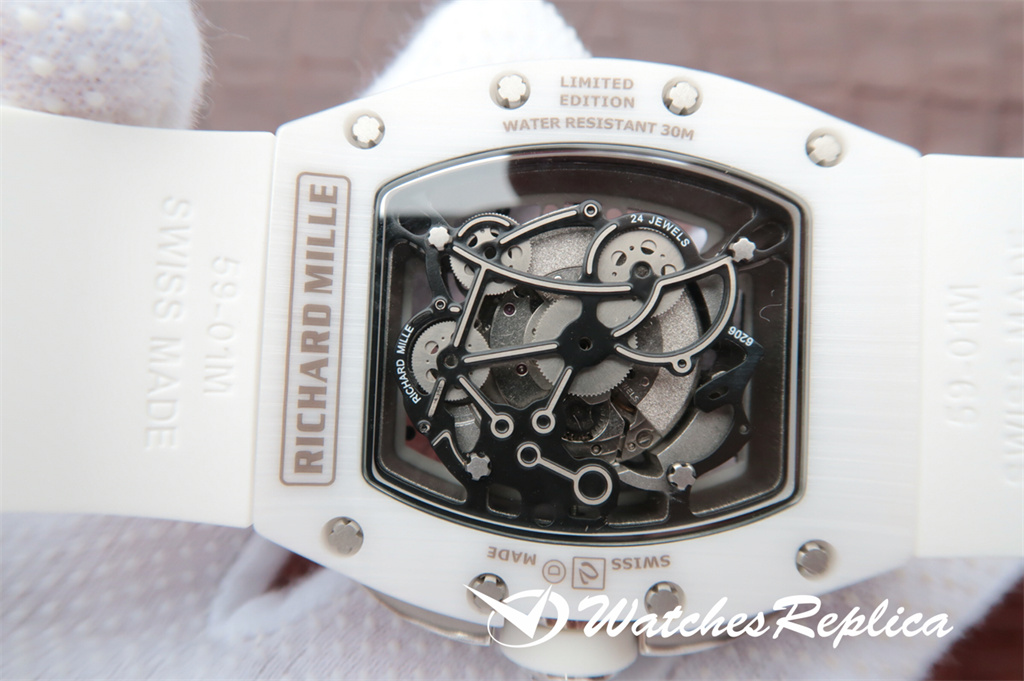 Richard Mille RM-053 Its elegant arc is first used in Richard Mille timepieces. The two windows respectively show the movement of the minute hand and the hour hand on the right, and the movement of the second hand on the left. This special design is convenient for checking the time quickly and effectively, while ensuring that the watch itself provides optimal protection. The imported quartz movement size is 48X42mm! !