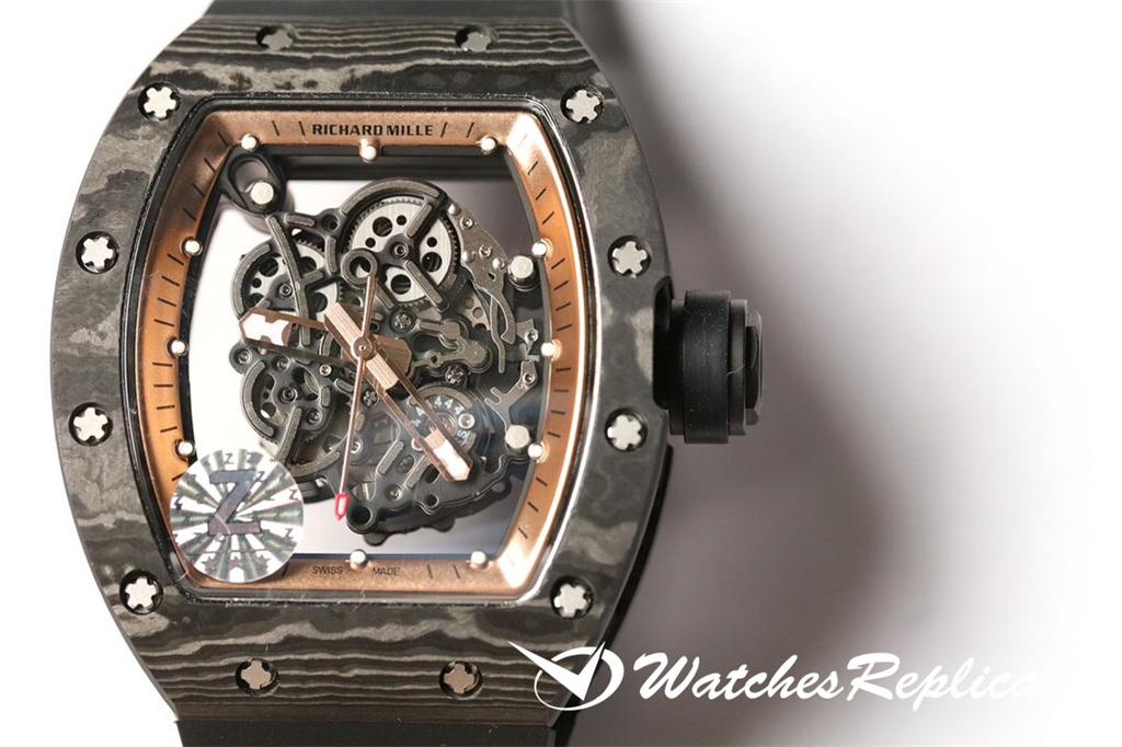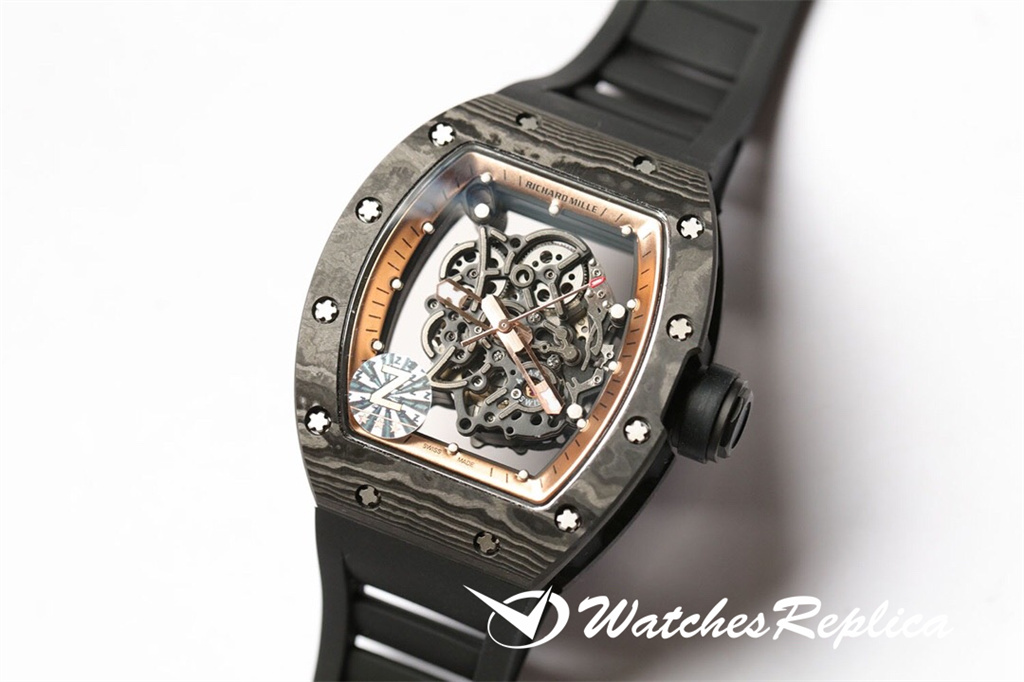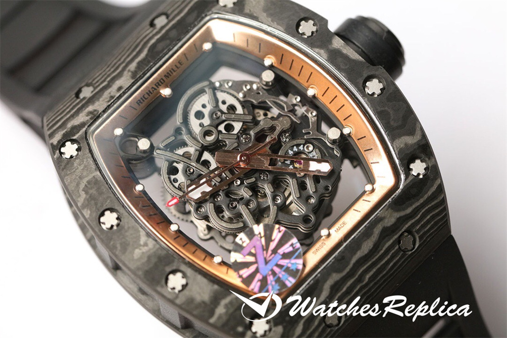 Richard Mille RM055 bezel and back cover are made of nano-ceramic composite material, which has scratch resistance and discoloration resistance, and the ceramic texture is clear and the appearance is perfect. No dial design, the hollow movement can be seen from the front and bottom, so you can’t put it down! outstanding quality.