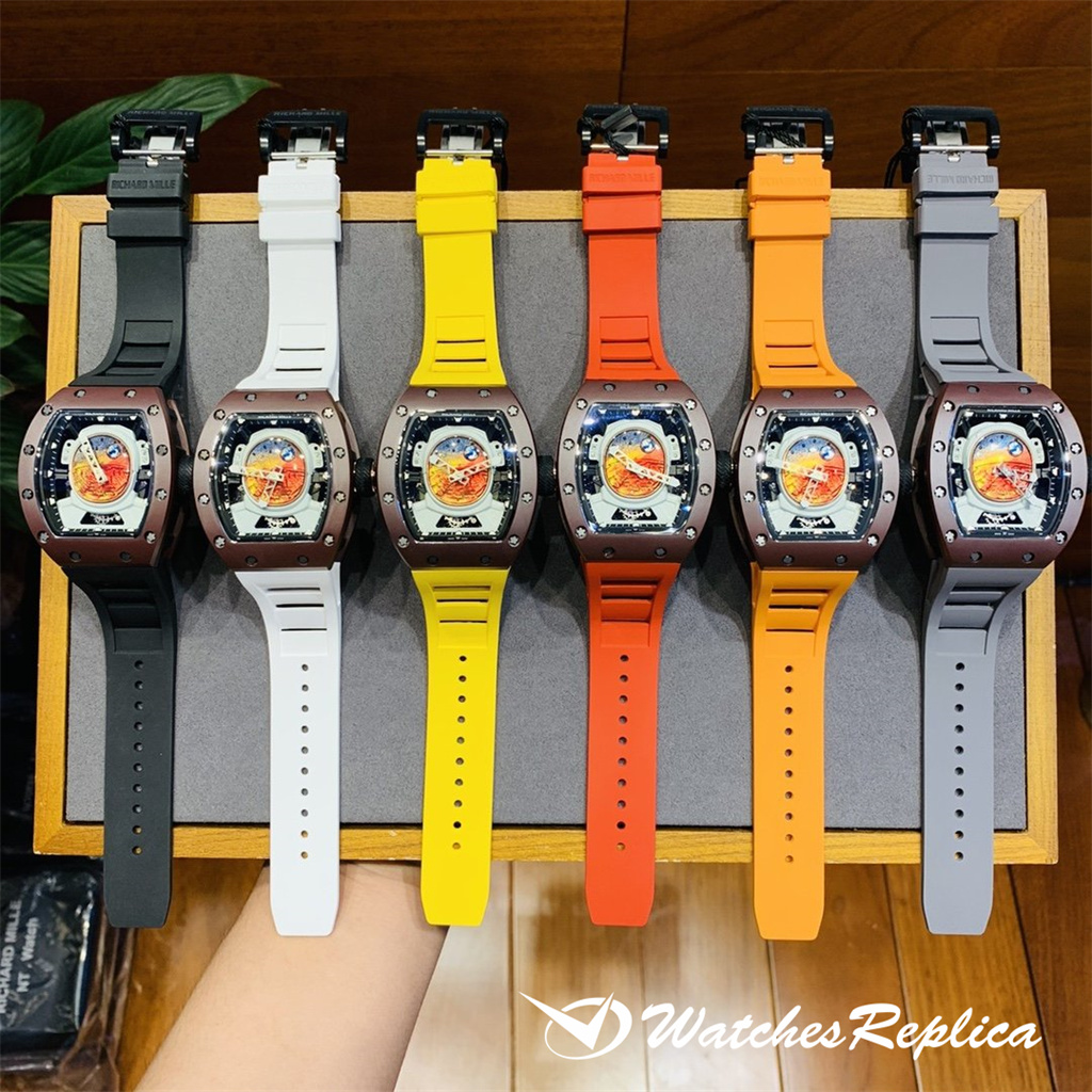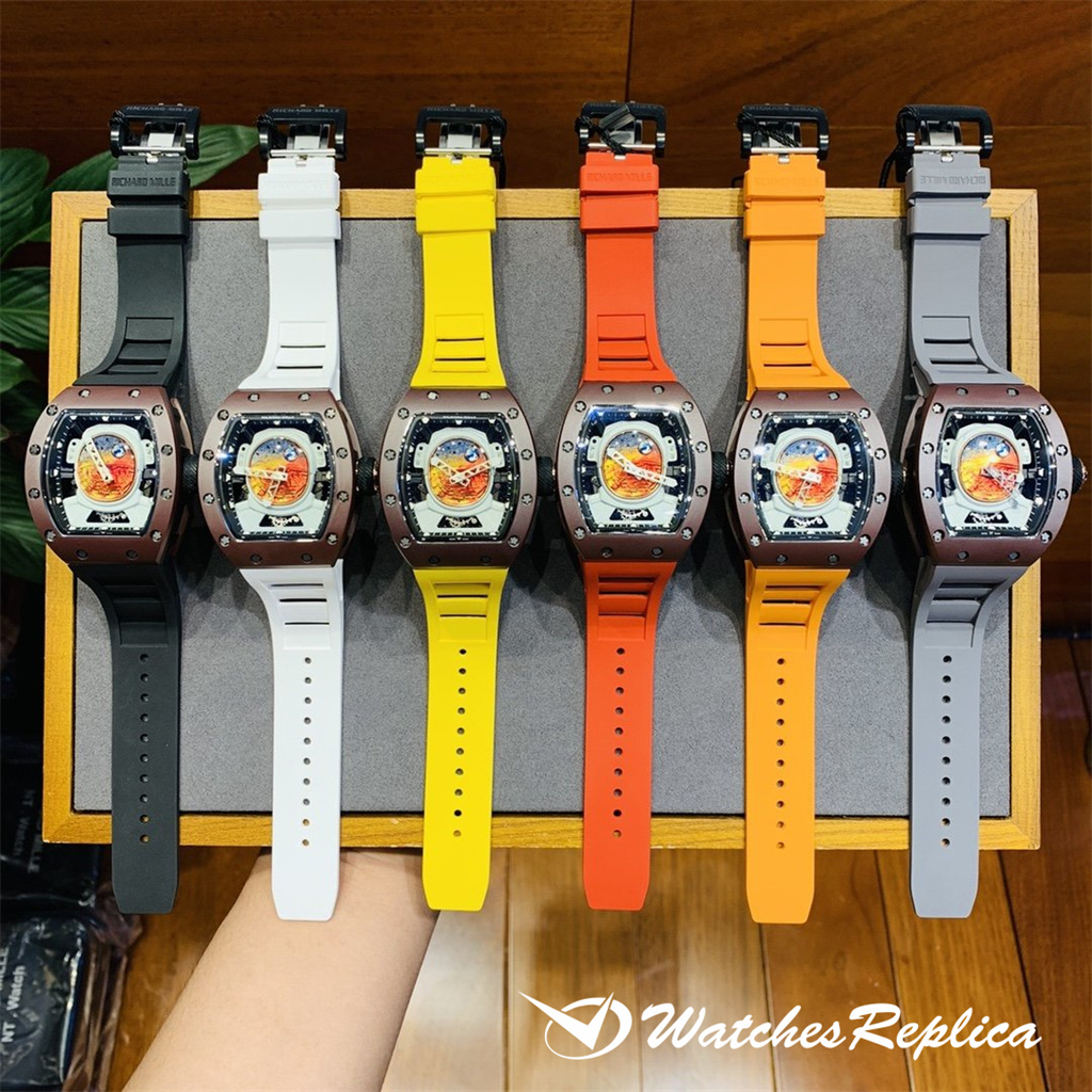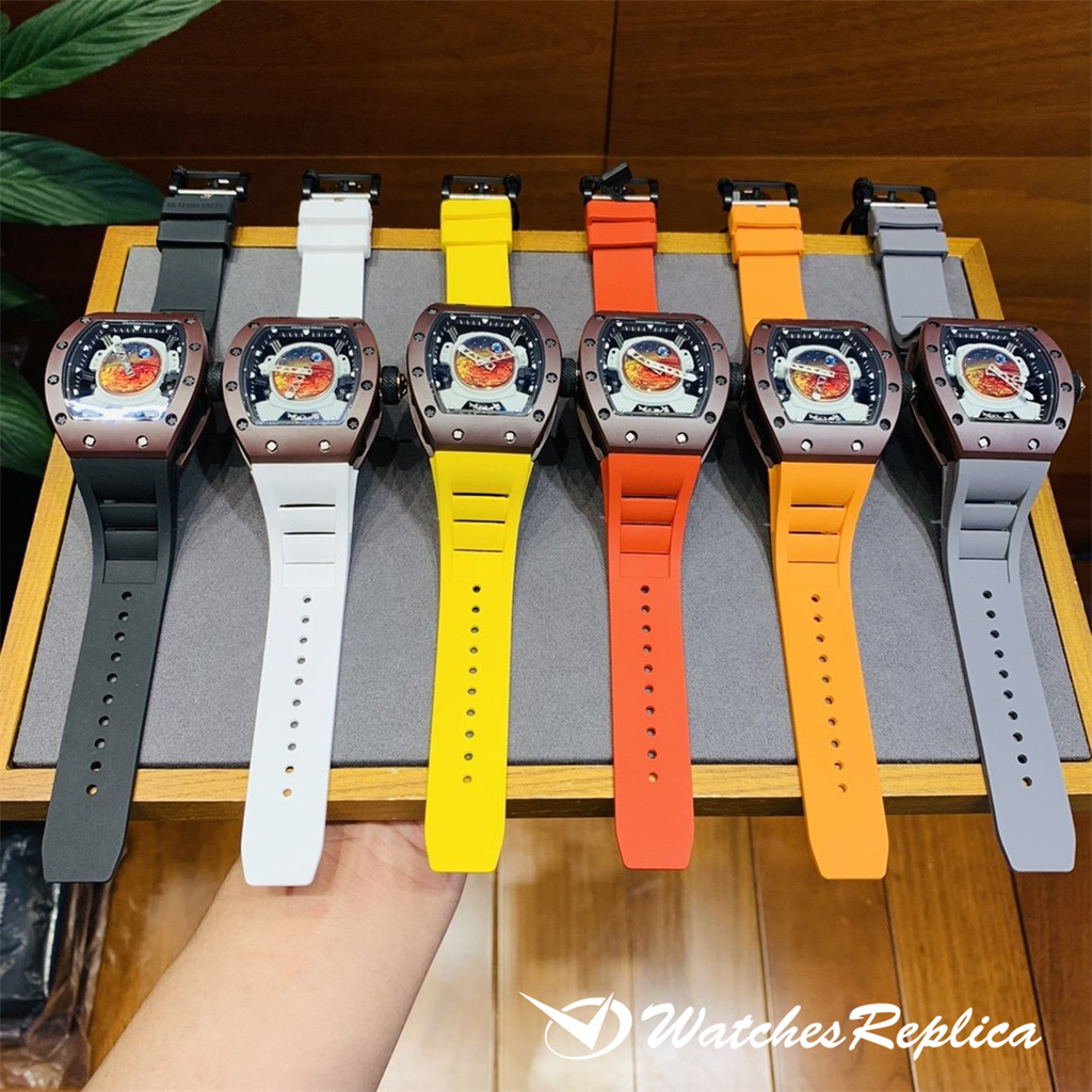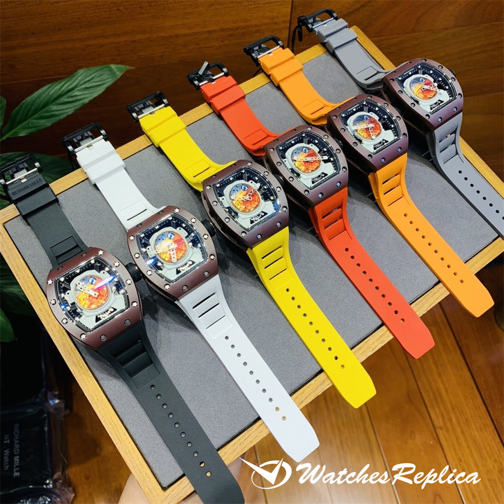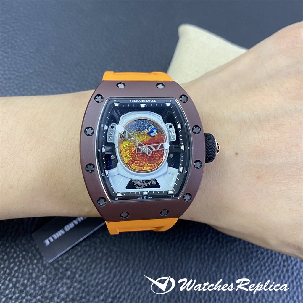 Richard Mille RM53-01 TPT carbon fiber watch is full of movement and vitality. The case is made of TPT carbon fiber, which is extremely strong, shock-resistant and damage-resistant. The unique corrugated luster of the carbon fiber and the sharp line of the case highlight the sporty style of this watch; through the anti-glare mirror, the suspension can be seen Skeleton movement, the movement is suspended in the case with 4 steel cables, which can withstand super strong external impact protection.