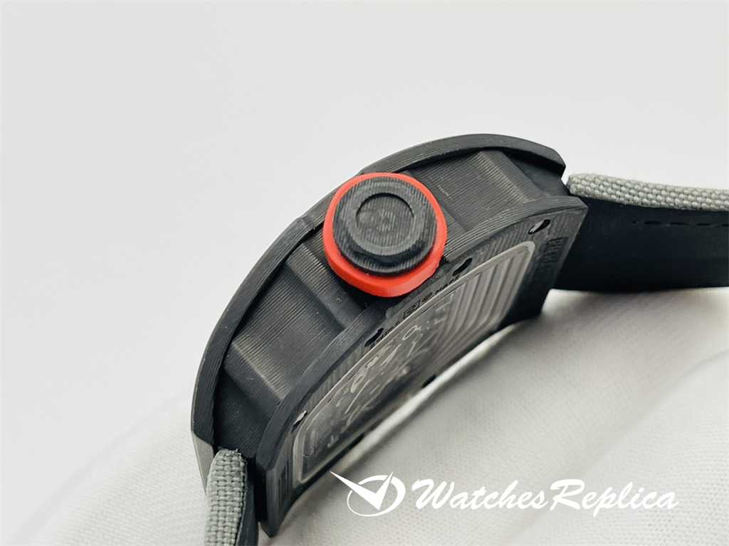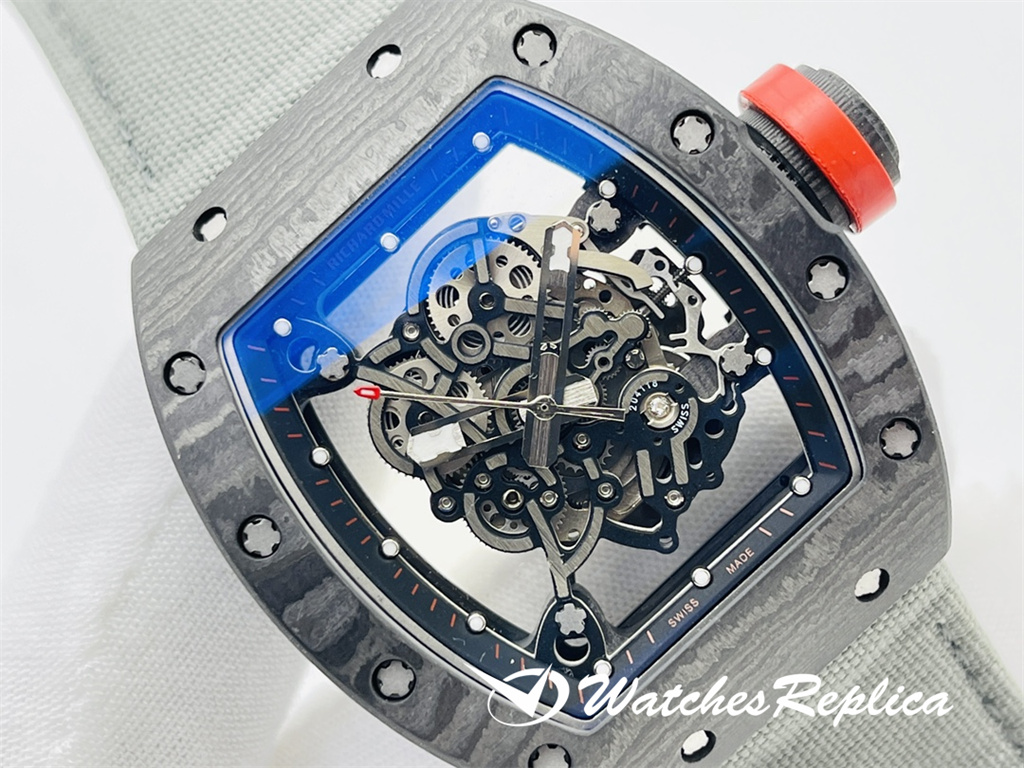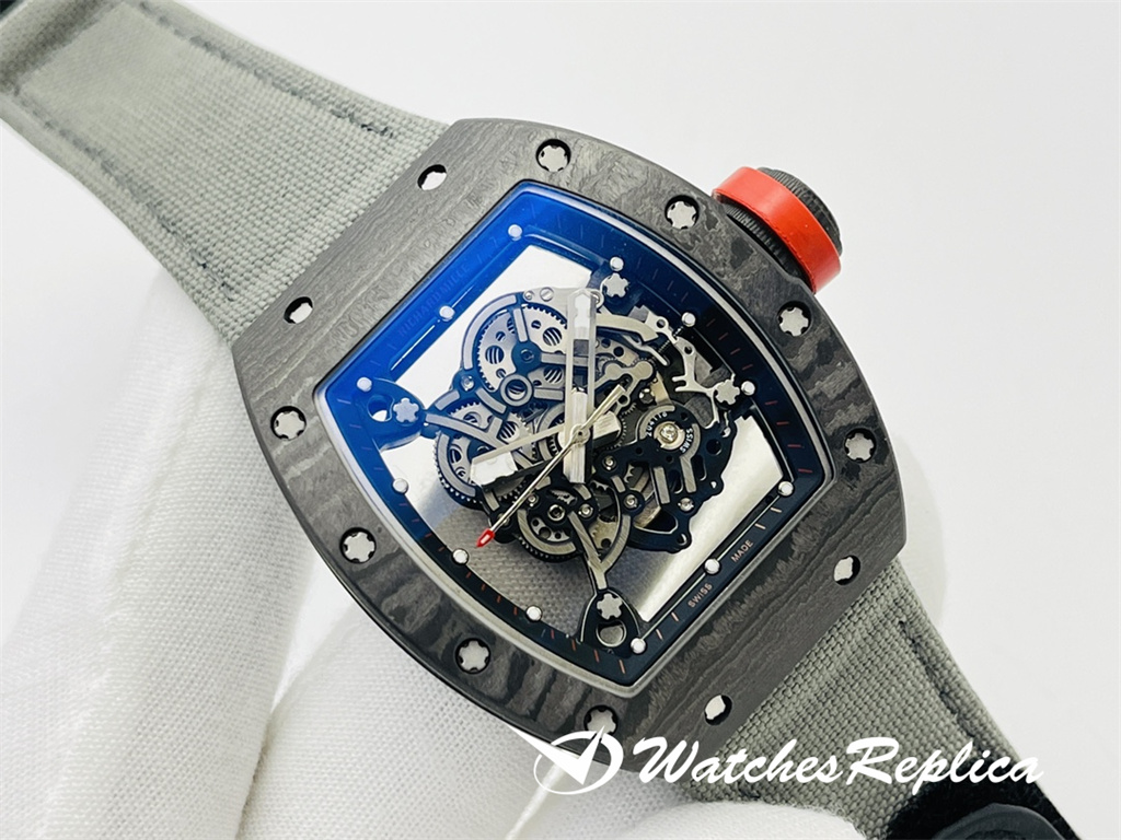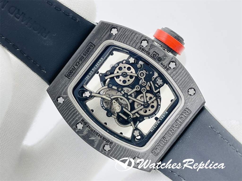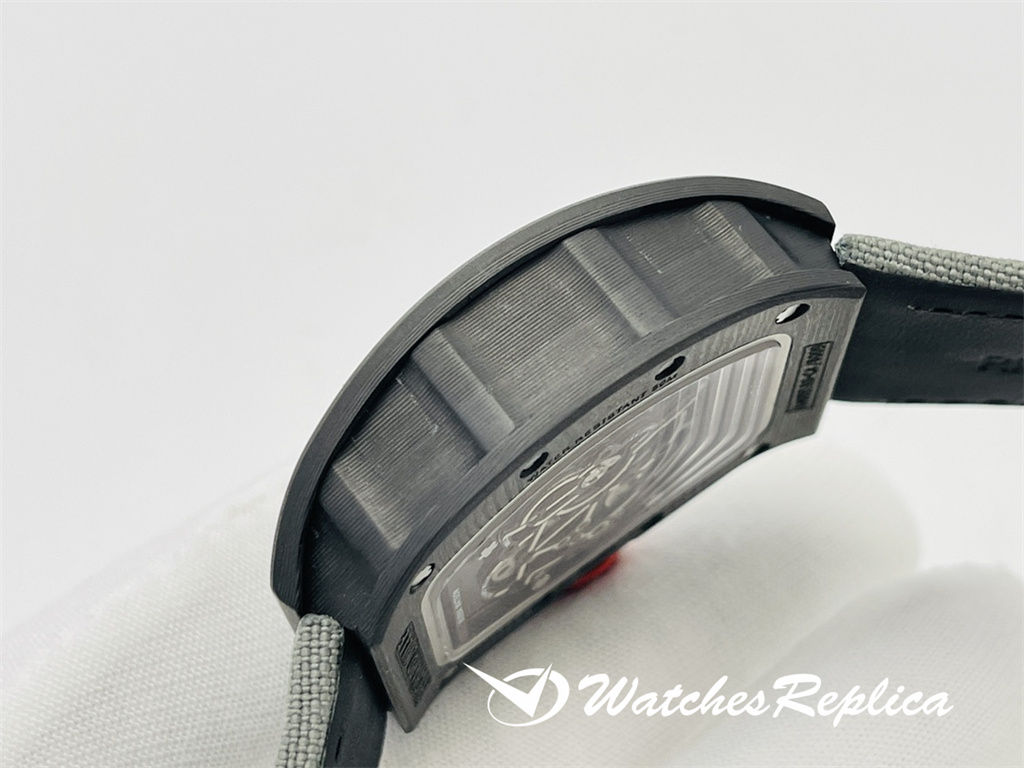 Richard Mille RichardMille RM53-01 equipped with imported 8215 mechanical size 43*50 mm case made of extremely strong, shock-resistant and damage-resistant TPT carbon fiber processing, carbon fiber unique corrugated luster and sharp case lines, It also highlights the sporty style of this watch; through the anti-glare watch mirror, you can see the suspended hollow movement. The movement is suspended in the case by 4 steel cables, which can withstand strong external impact protection.