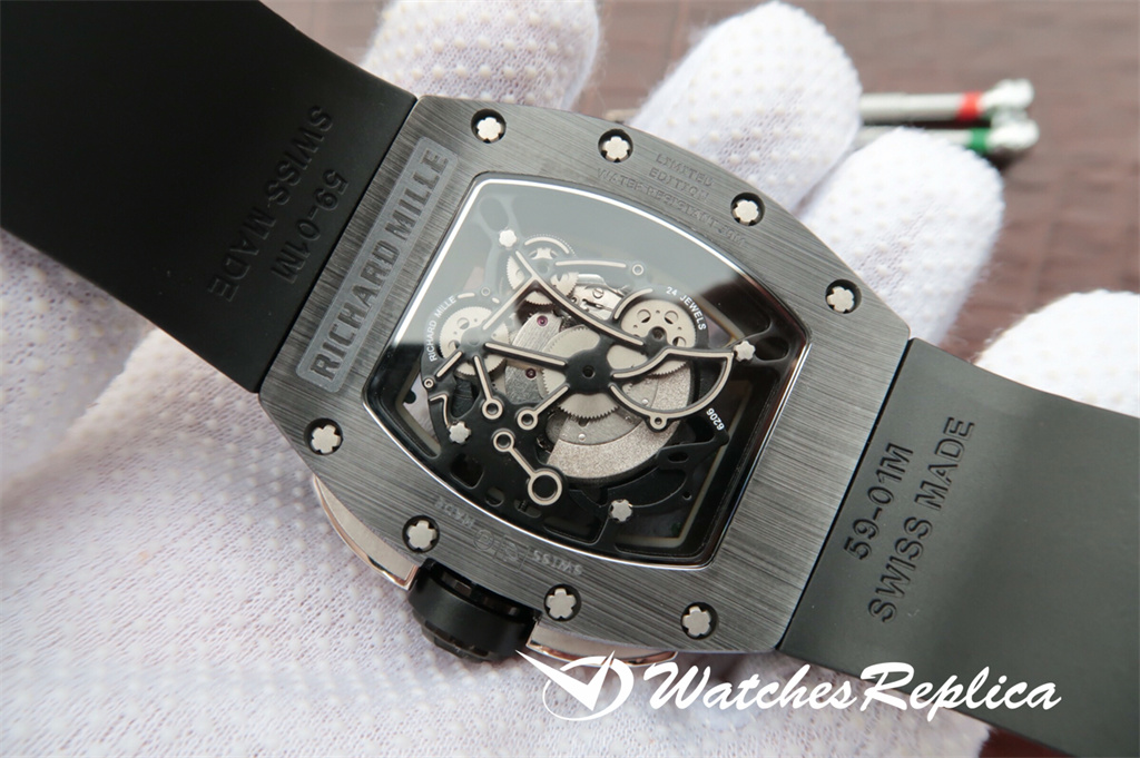 Richard Mille RM011 men’s watch, made of zirconia polycrystalline ceramics the same as the original, is strong, textured and wear-resistant. Original Shanghai 7750 automatic mechanical chronograph movement, copy the original data, open the mold, length 50*width 40 mm, original 1:1 barrel-shaped structure, rubber strap, transparent bottom