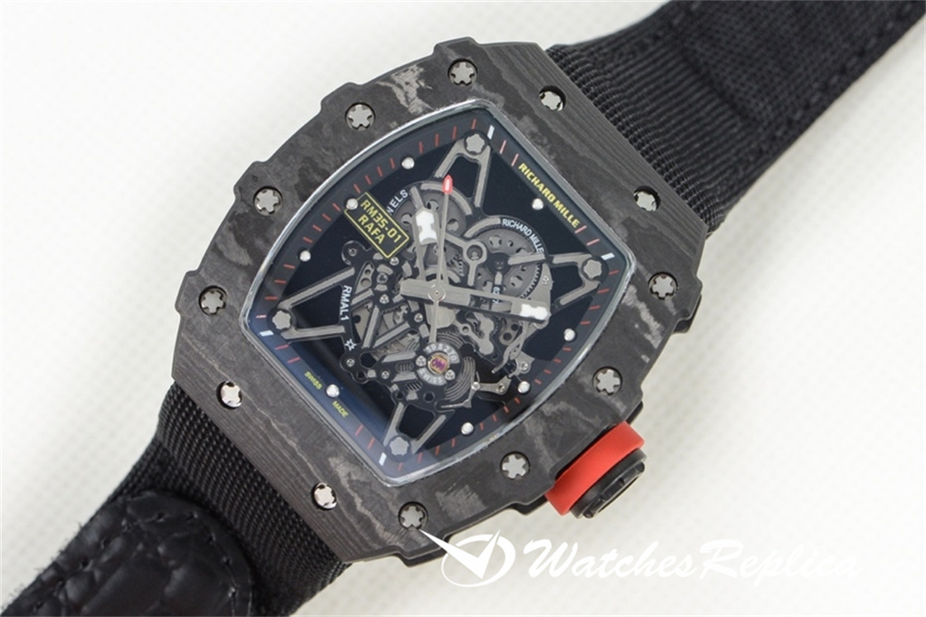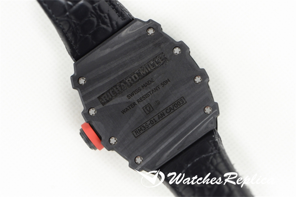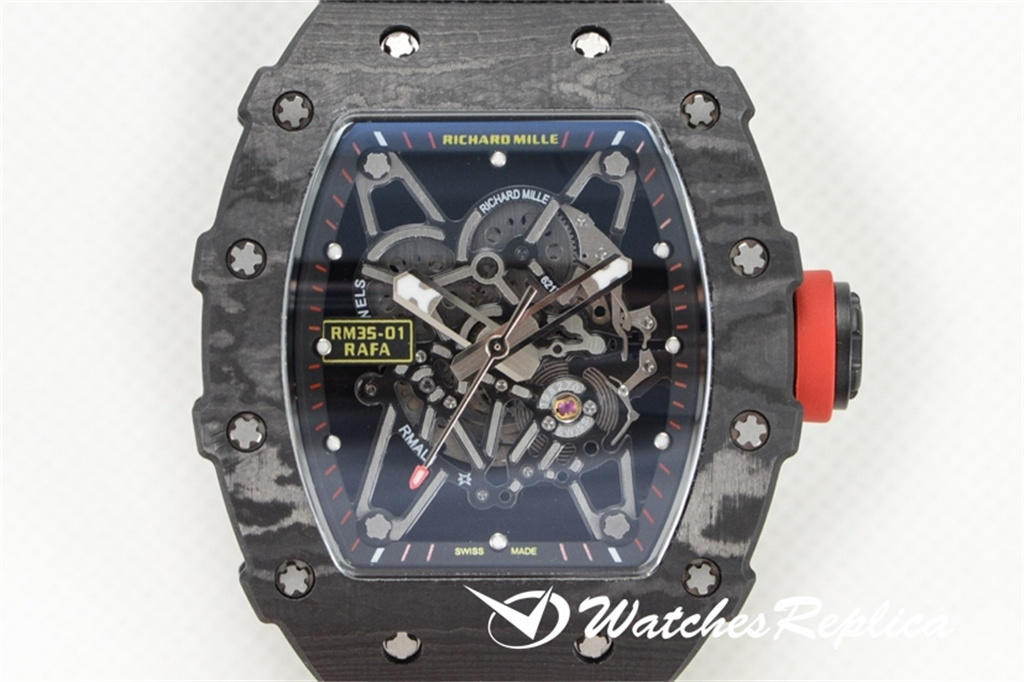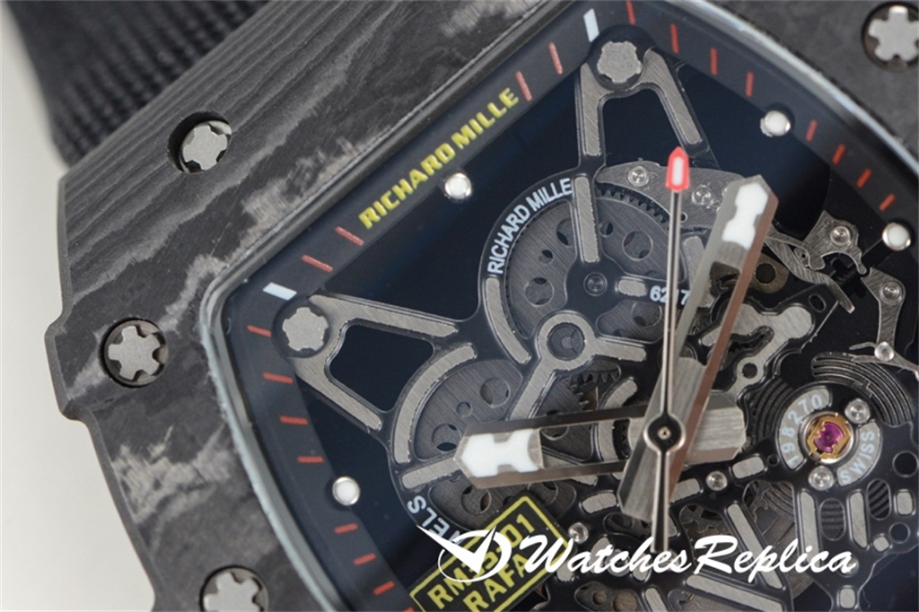 Richard Mille RM35-02 uses the latest texture, the latest and lightest carbon fiber as the material. It is not the old model. The texture of the material has changed. Look for the exclusive fiber texture. The RM35-02 series shells all use the genuine raw material black carbon fiber layer. , The white quartz fiber layer is interwoven at a 45-degree angle between the layers of the special processing system; the shell is light in texture, has excellent impact resistance, non-allergic and ultraviolet resistance; the integrated movement bottom plate is exquisite and delicate, Pay attention to the beauty of details and have a unique mechanical aesthetics; high-end and powerful appearance, complex hollowed out movement, RM35-02 series can show a kind of ultimate charm, giving people a kind of hollowed-out design beauty!