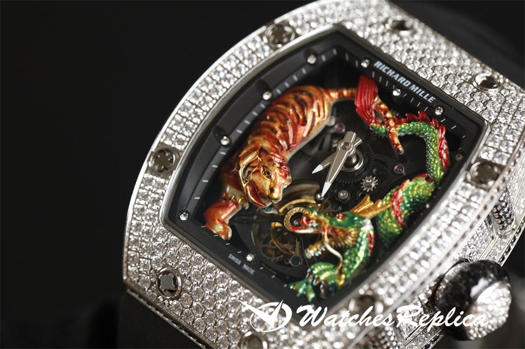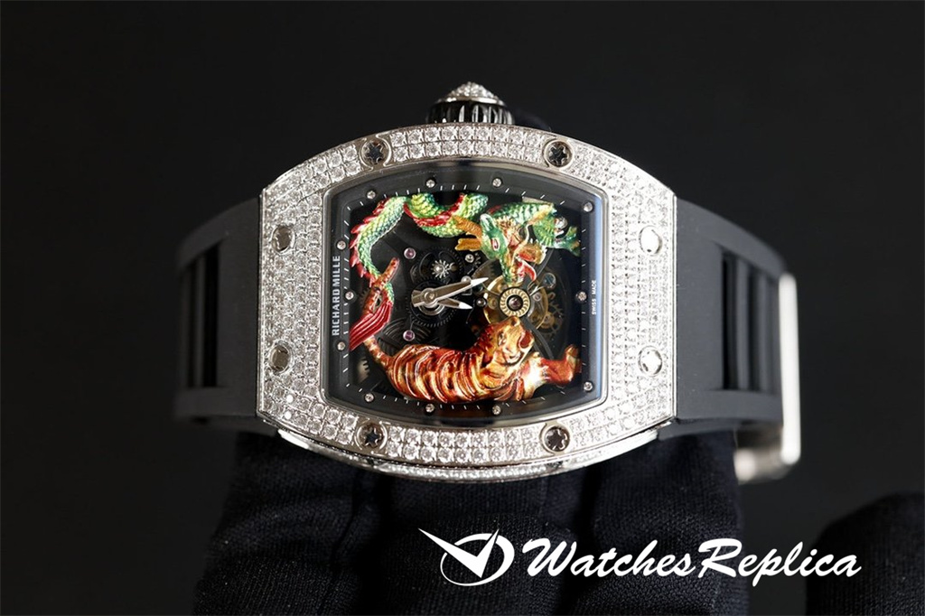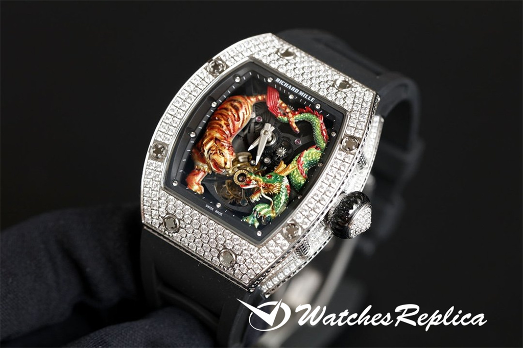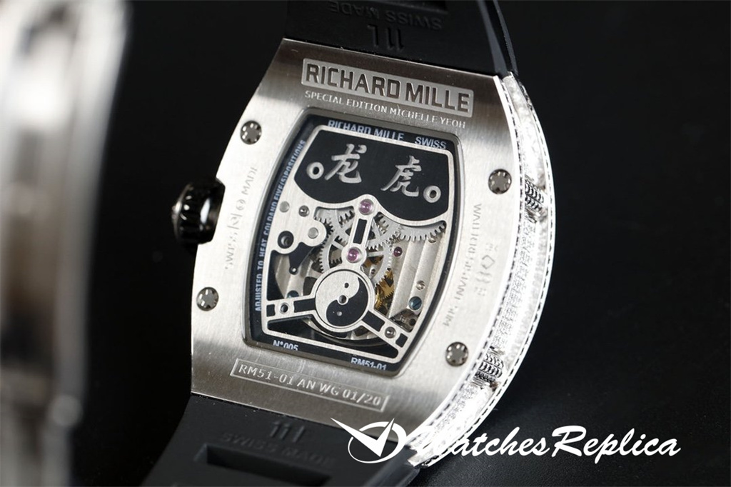 Richard Mille RM53-01 TPT carbon fiber watch is full of movement and vitality. The case is made of TPT carbon fiber, which is extremely strong, shock-resistant and damage-resistant. The unique corrugated luster of the carbon fiber and the sharp line of the case highlight the sporty style of this watch; through the anti-glare mirror, the suspension can be seen Skeleton movement, the movement is suspended in the case with 4 steel cables, which can withstand super strong external impact protection.