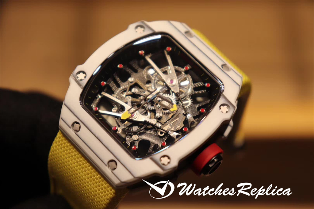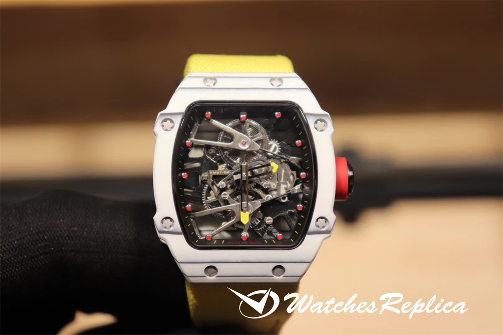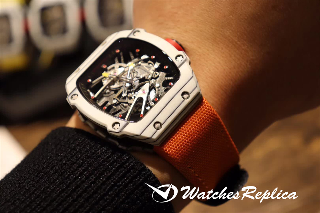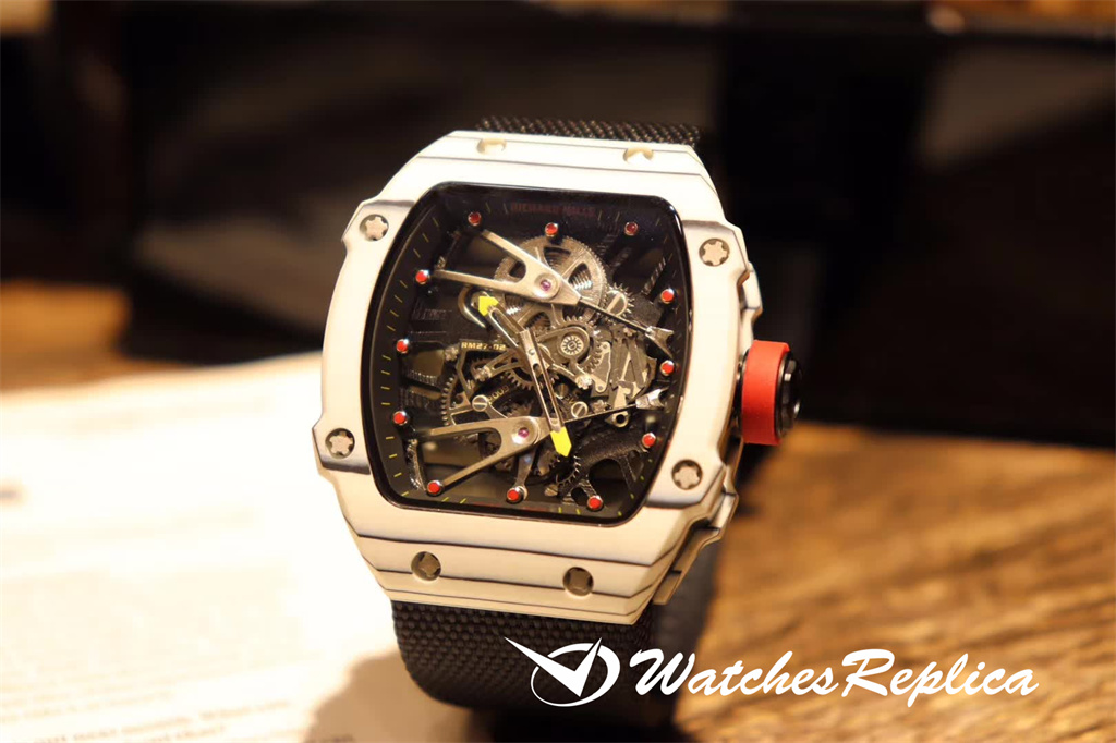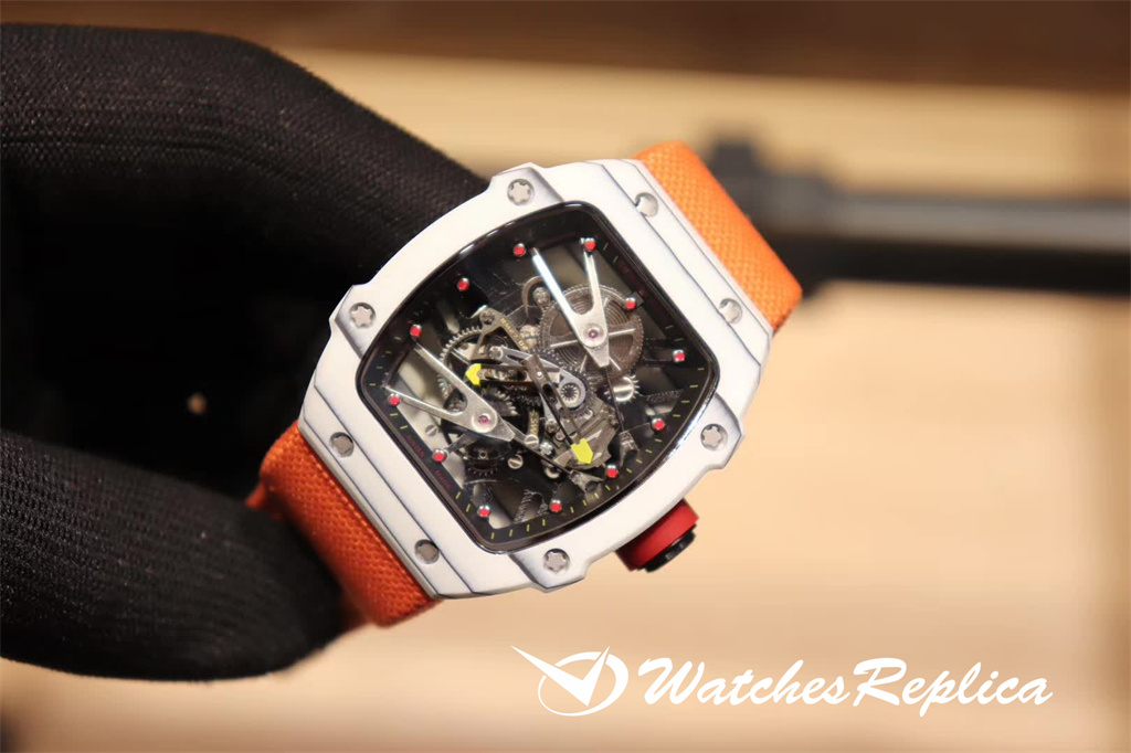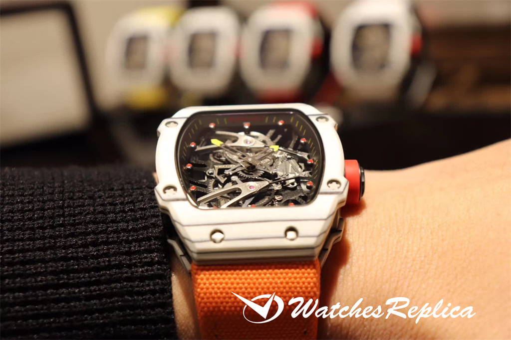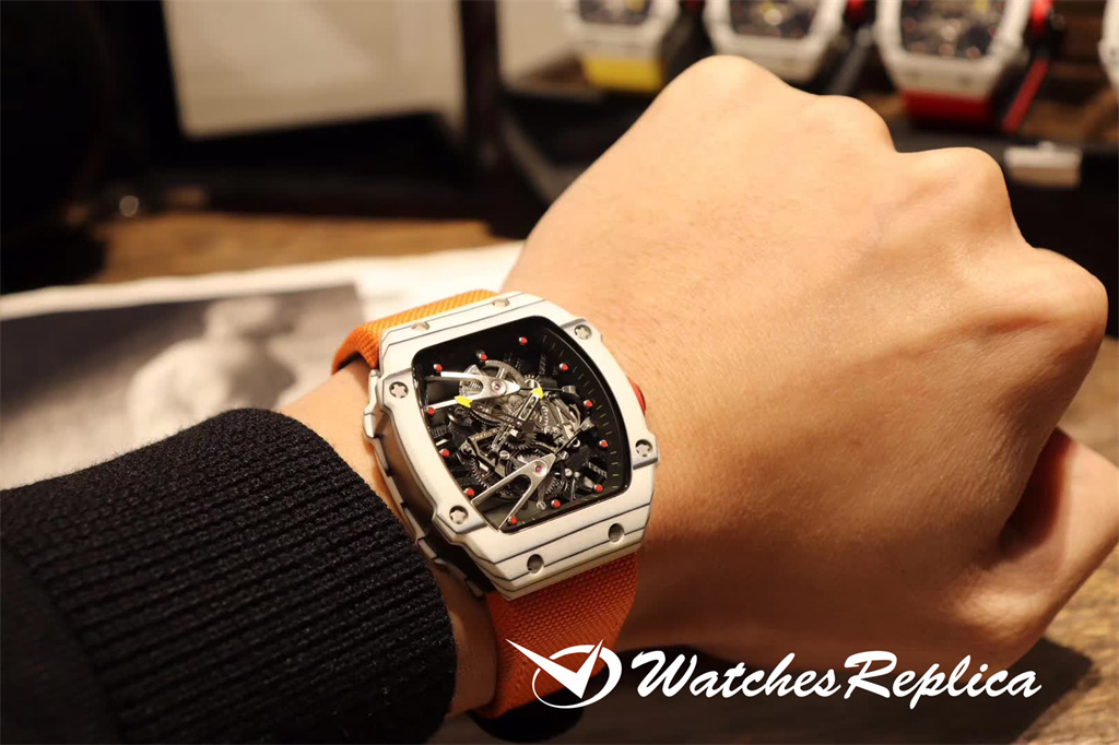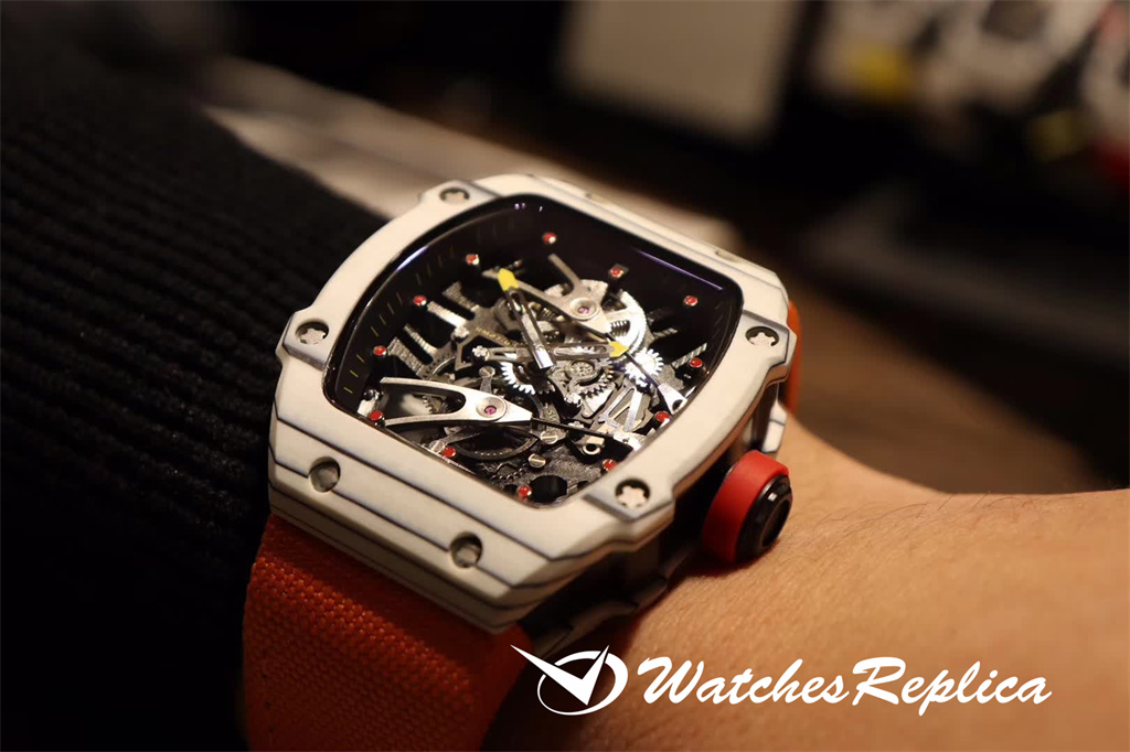 Richard Mille RM35-01 full carbon fiber series. This replica case and case back use high-density imported carbon fiber material. The carbon fiber case back and the titanium inner tank use synchronous CNC on both sides. Processing! There is no gap between the upper and lower sides of the shell and the left and right sides. The rubber strap/nylon strap imported from Malaysia gives it a super tough and soft feeling. According to the original principle, the titanium metal material is used as the inner tank and the most cutting-edge electric Sparks cut into the air technology! Equipped with the original imported mechanical movement, the sapphire crystal glass has a unique and exaggerated case dial design just to meet you with unique personality.