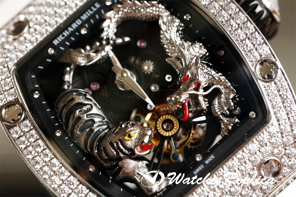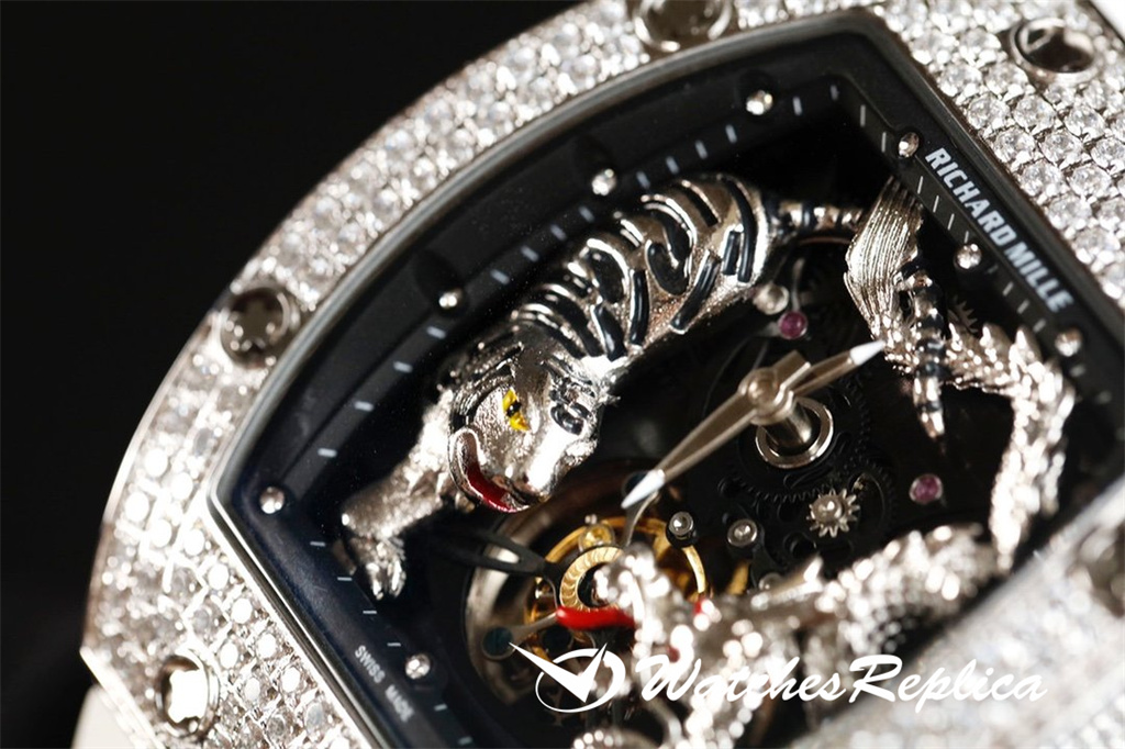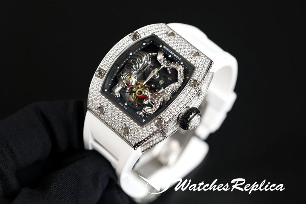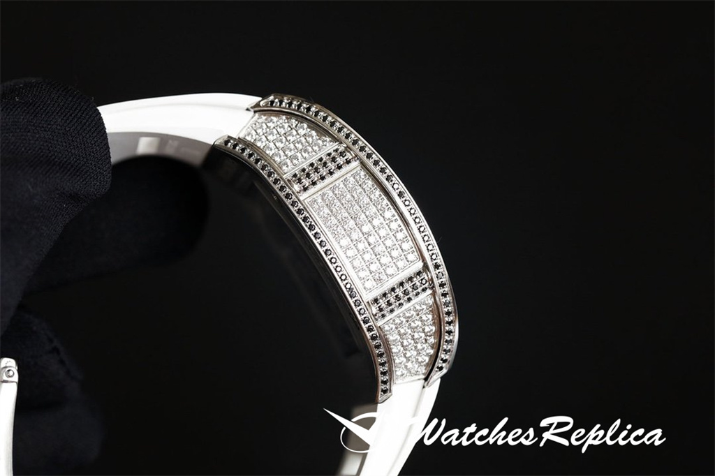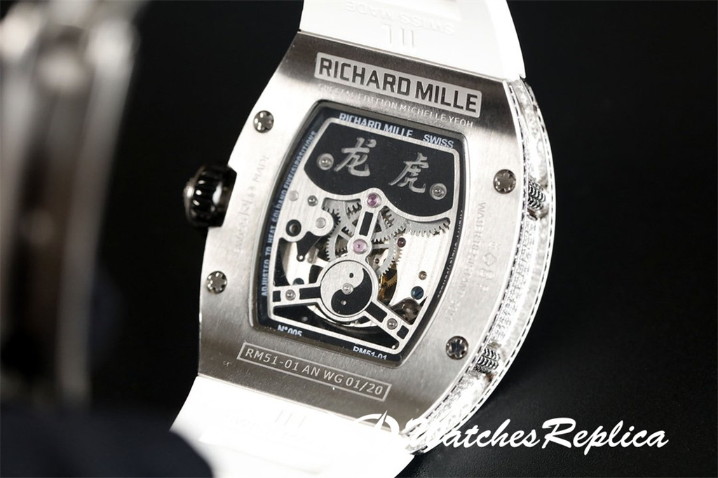The case of 1 The watch case is a new interpretation of Richard Mille’s favorite barrel-shaped case, and it is also an innovative interpretation. The elongated shape of the case between 2 o’clock and 5 o’clock is amazing, and this avoids the friction between the crown and the wrist and retains the excellent comfort of wearing. The diameter is 51.10 x 43.10 x 15.20 mm, and the material is made of TPT carbon fiber composite. This material is strong, lightweight and durable.