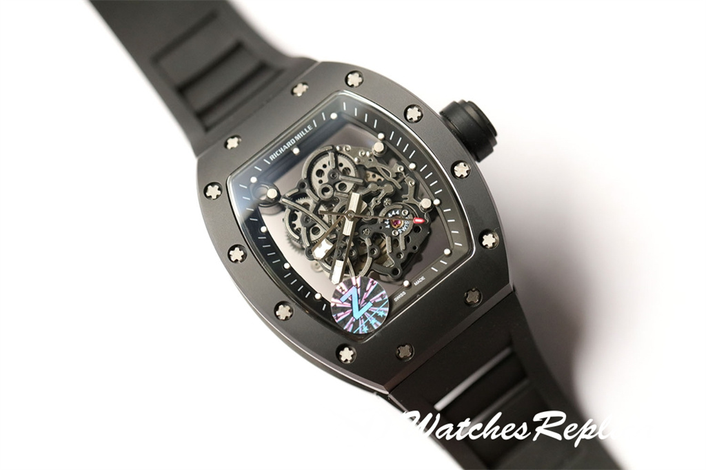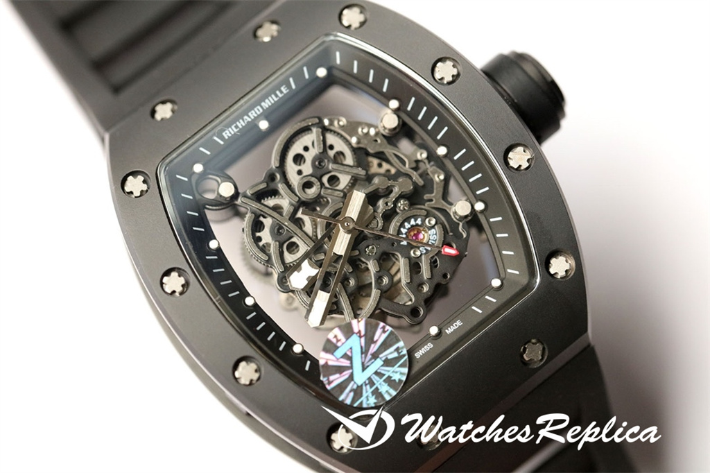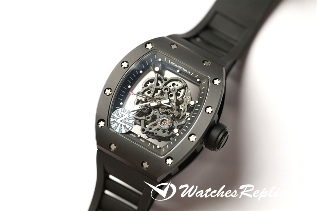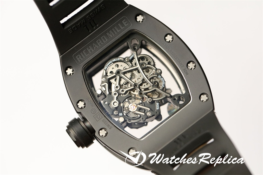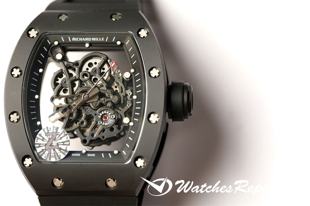 Richard Mille RM055 bezel and back cover are made of nano-ceramic composite material, which has scratch resistance and discoloration resistance, and the ceramic texture is clear and the appearance is perfect. No dial design, the hollow movement can be seen from the front and bottom, so you can’t put it down! outstanding quality.