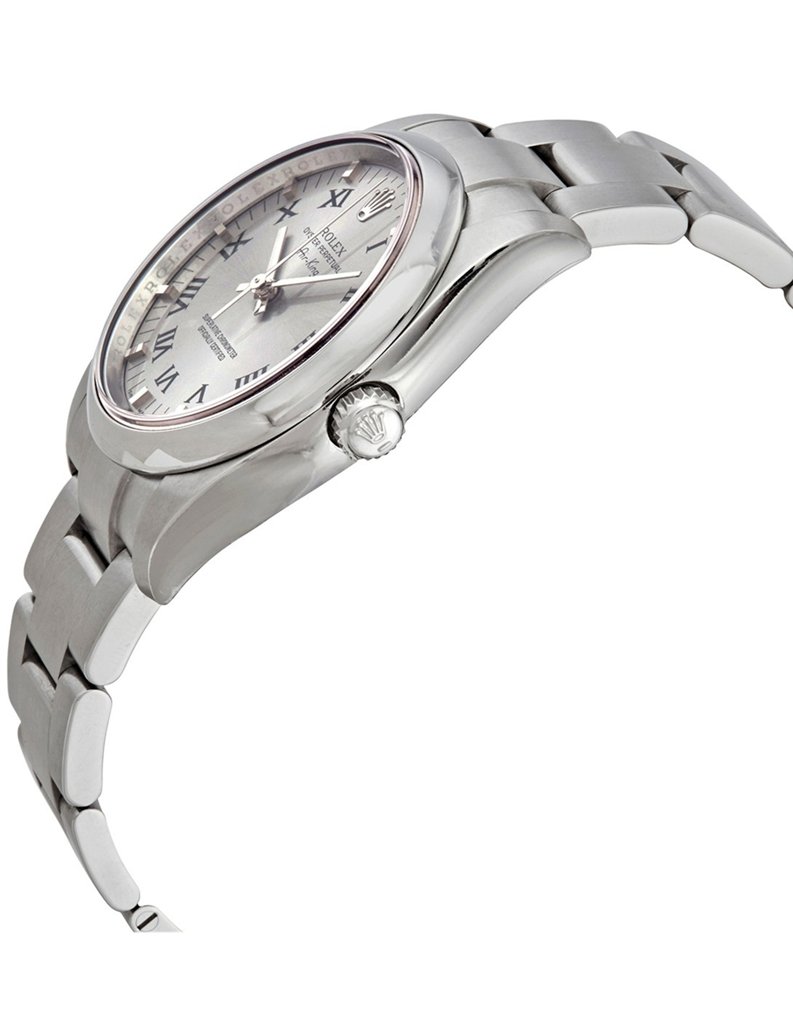 Exquisite Rolex Air-King watch with a chic grey dial and sturdy steel bracelet, crafted with precision and attention to detail. Its automatic movement ensures reliable timekeeping, while the water resistance feature adds practicality. This timepiece is an excellent choice for discerning gentlemen seeking a classic and functional watch.