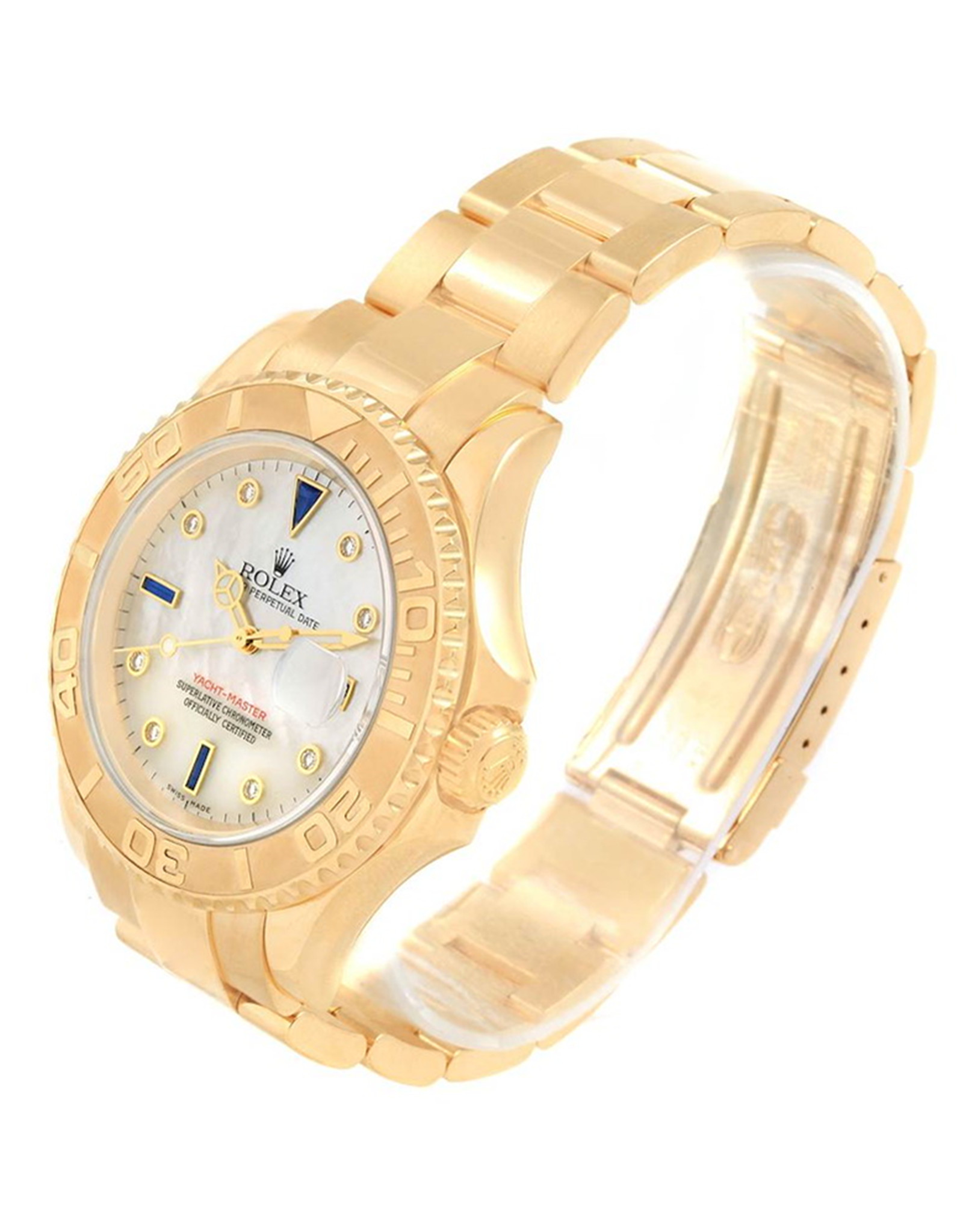 Be the first to review “Replica Rolex Yacht master Yellow Gold MOP Diamond Sapphire Serti Watch 16628 40MM”