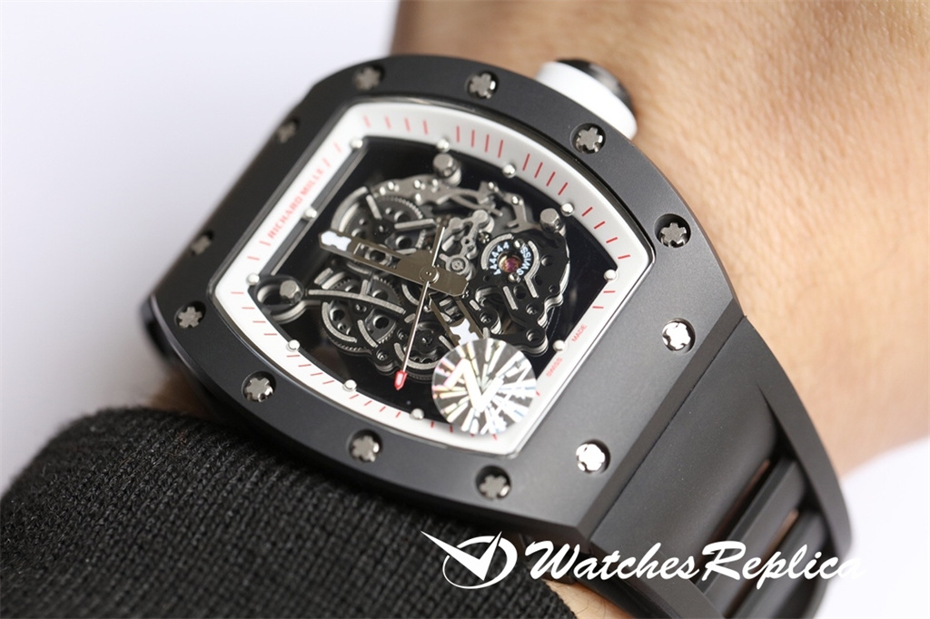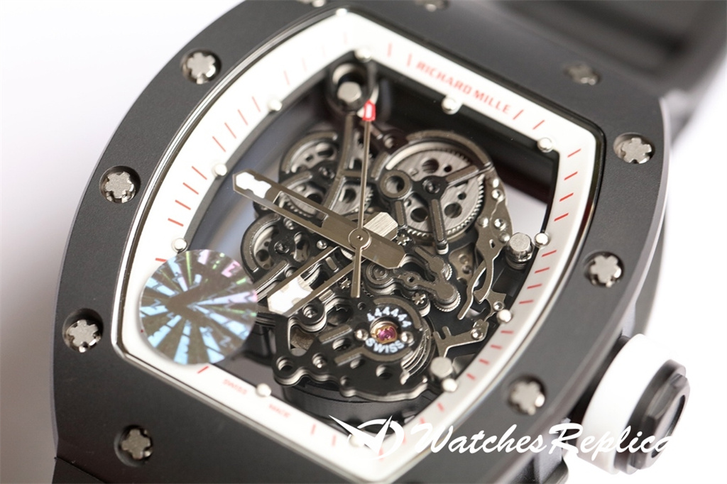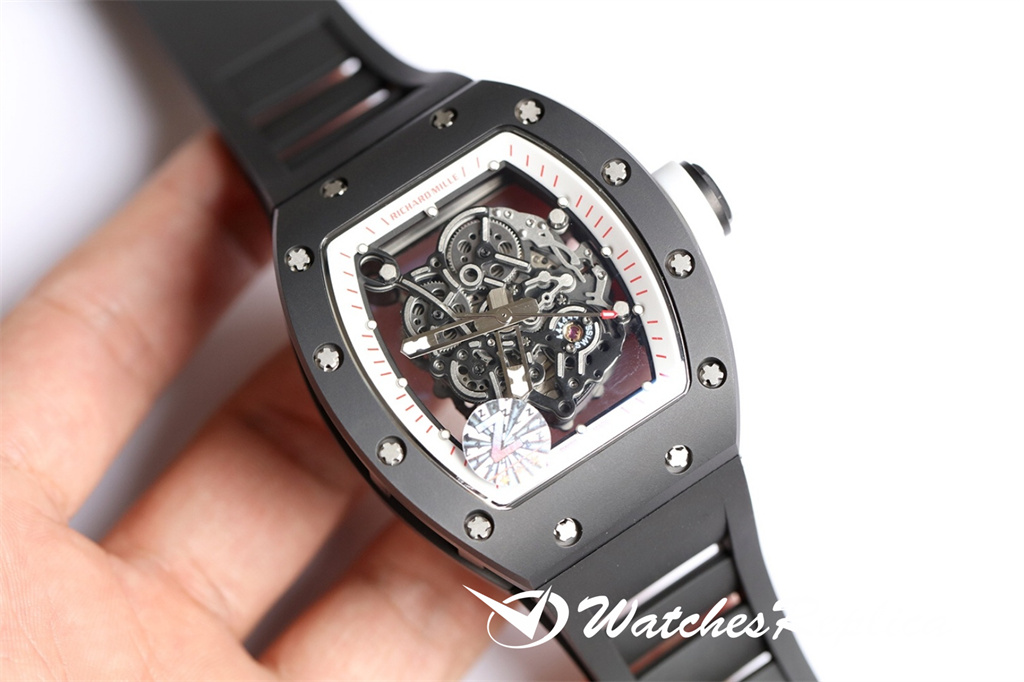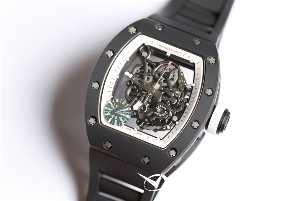 Richard Mille RM055 bezel and back cover are made of nano-ceramic composite material, which has scratch resistance and discoloration resistance, and the ceramic texture is clear and the appearance is perfect. No dial design, the hollow movement can be seen from the front and bottom, so you can’t put it down! outstanding quality.