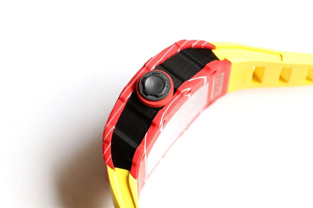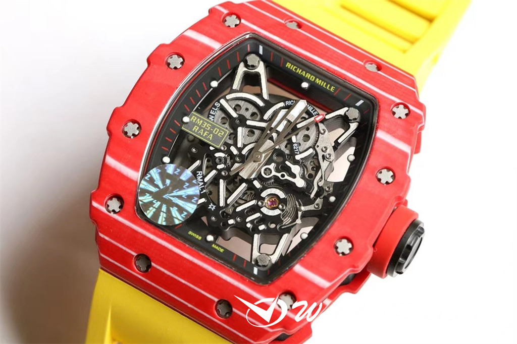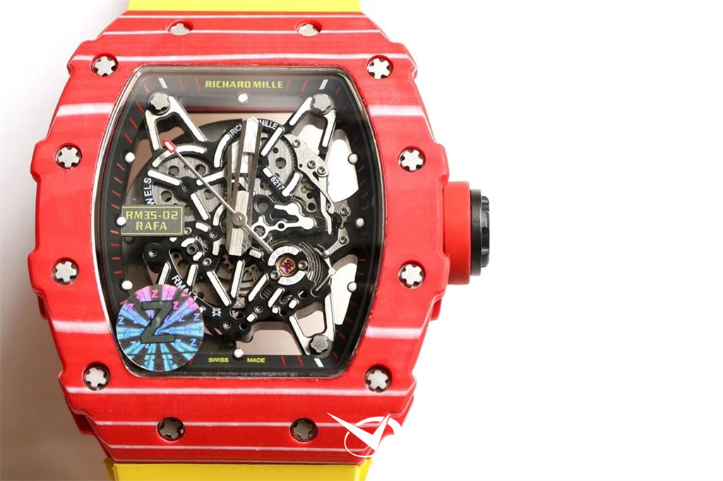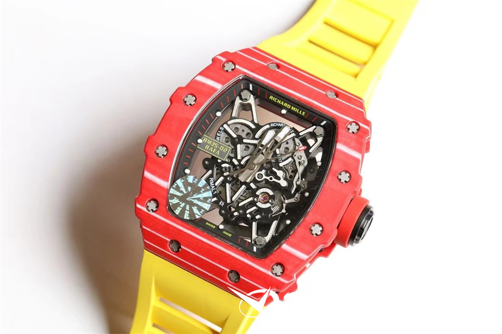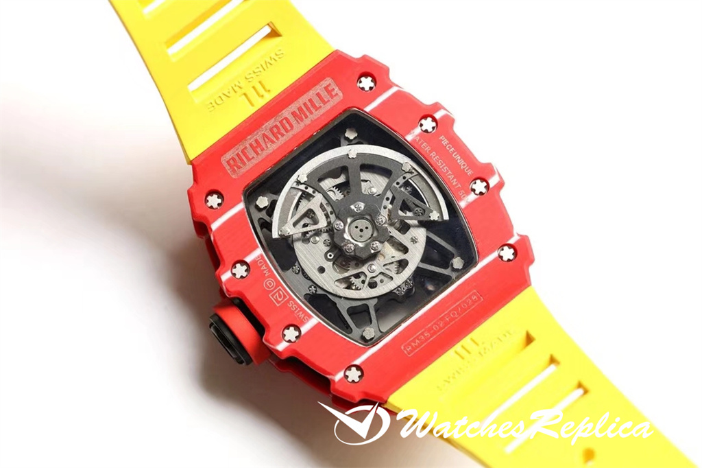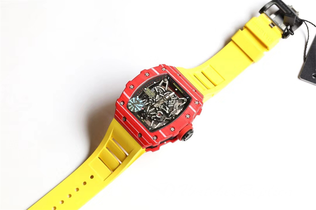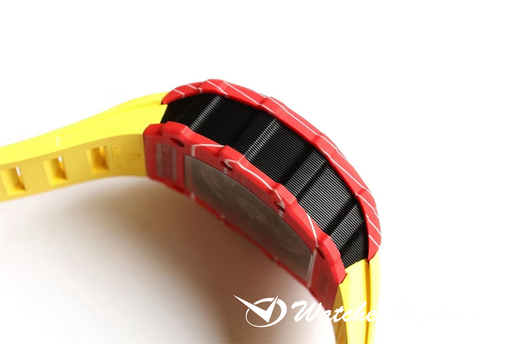 Richard Mille RM53-01 TPT carbon fiber watch is full of movement and vitality. The case is made of TPT carbon fiber, which is extremely strong, shock-resistant and damage-resistant. The unique corrugated luster of the carbon fiber and the sharp line of the case highlight the sporty style of this watch; through the anti-glare mirror, the suspension can be seen Skeleton movement, the movement is suspended in the case with 4 steel cables, which can withstand super strong external impact protection.
