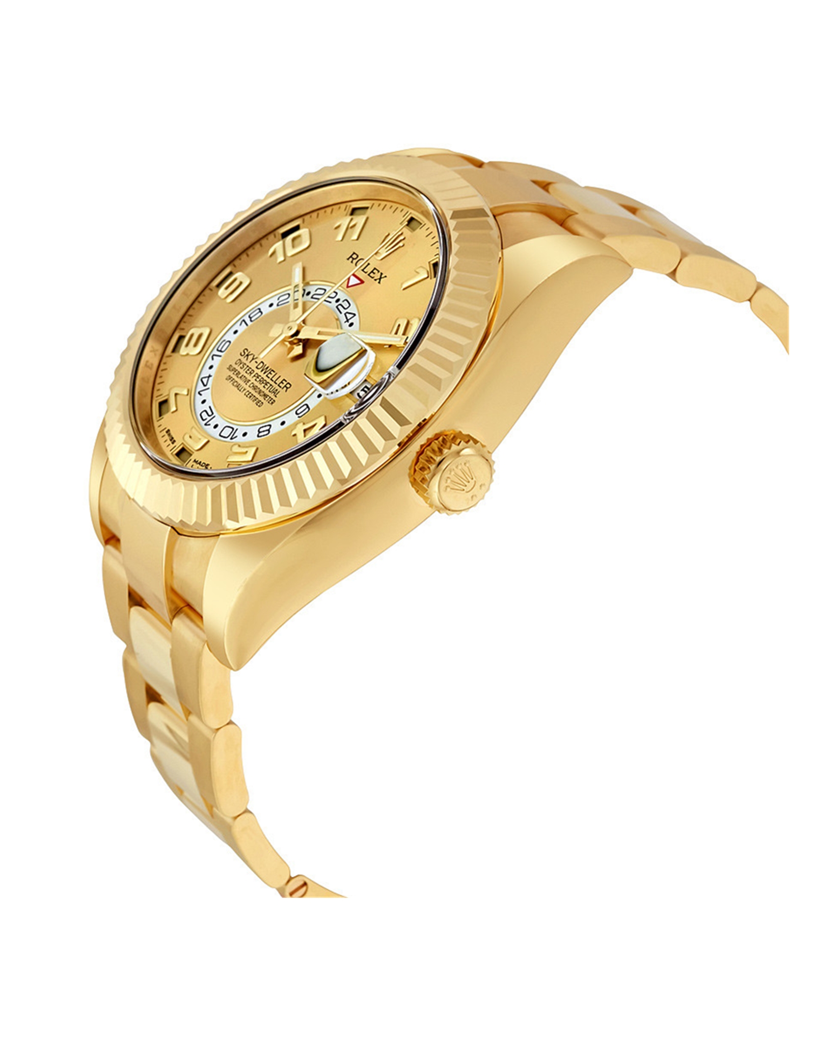 Featuring a striking 42MM case made of yellow gold, the Sky-Dweller stands out with its champagne Arabic dial that brings a touch of class to any outfit. The gold Oyster bracelet complements the case perfectly, providing both comfort and style. Water-resistant capabilities ensure that this watch can keep up with the lifestyle of any modern man, making it suitable for both formal and casual occasions. Investing in a reliable timepiece such as the Replica Rolex Sky-Dweller allows you to merge functionality with luxurious design.